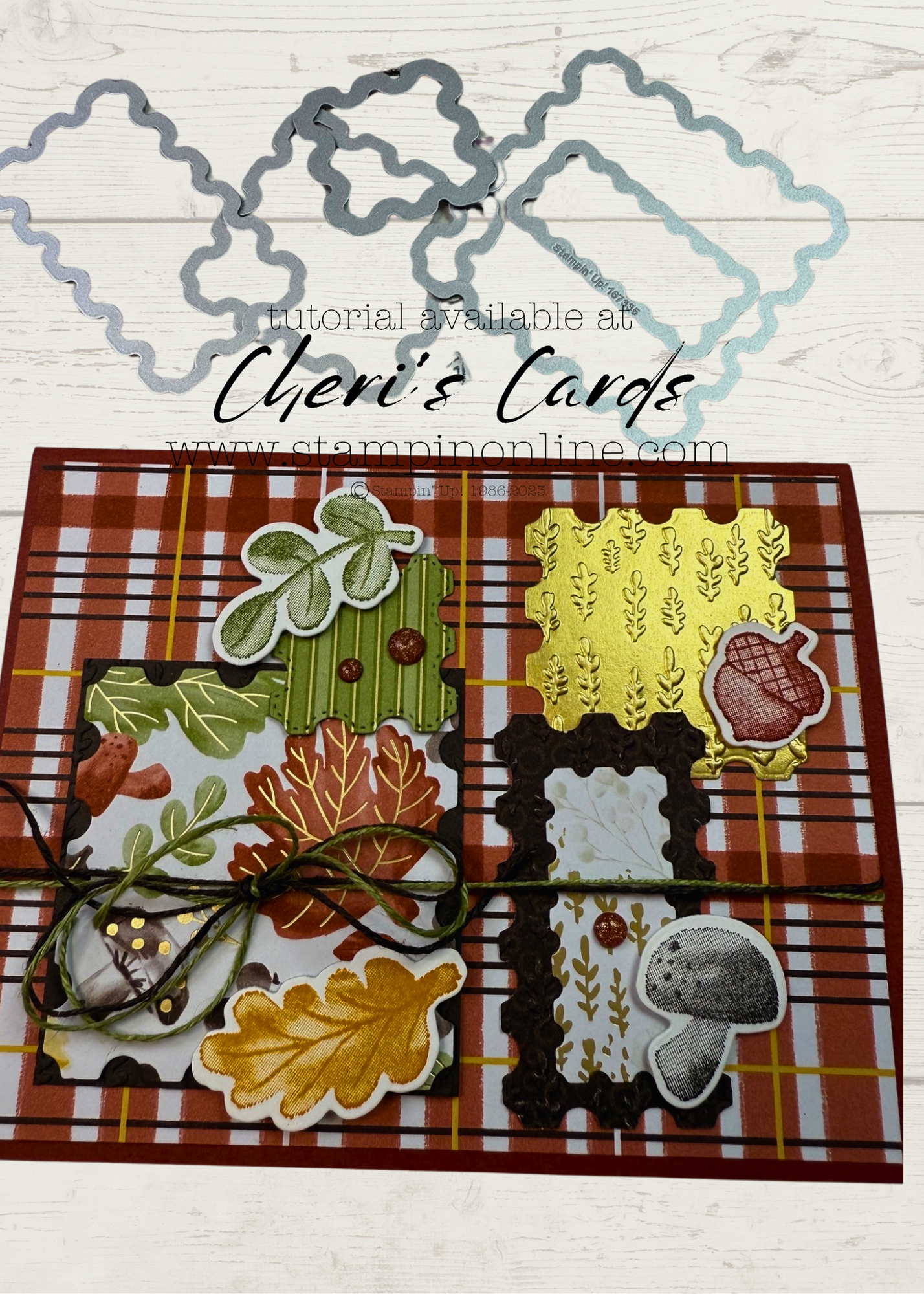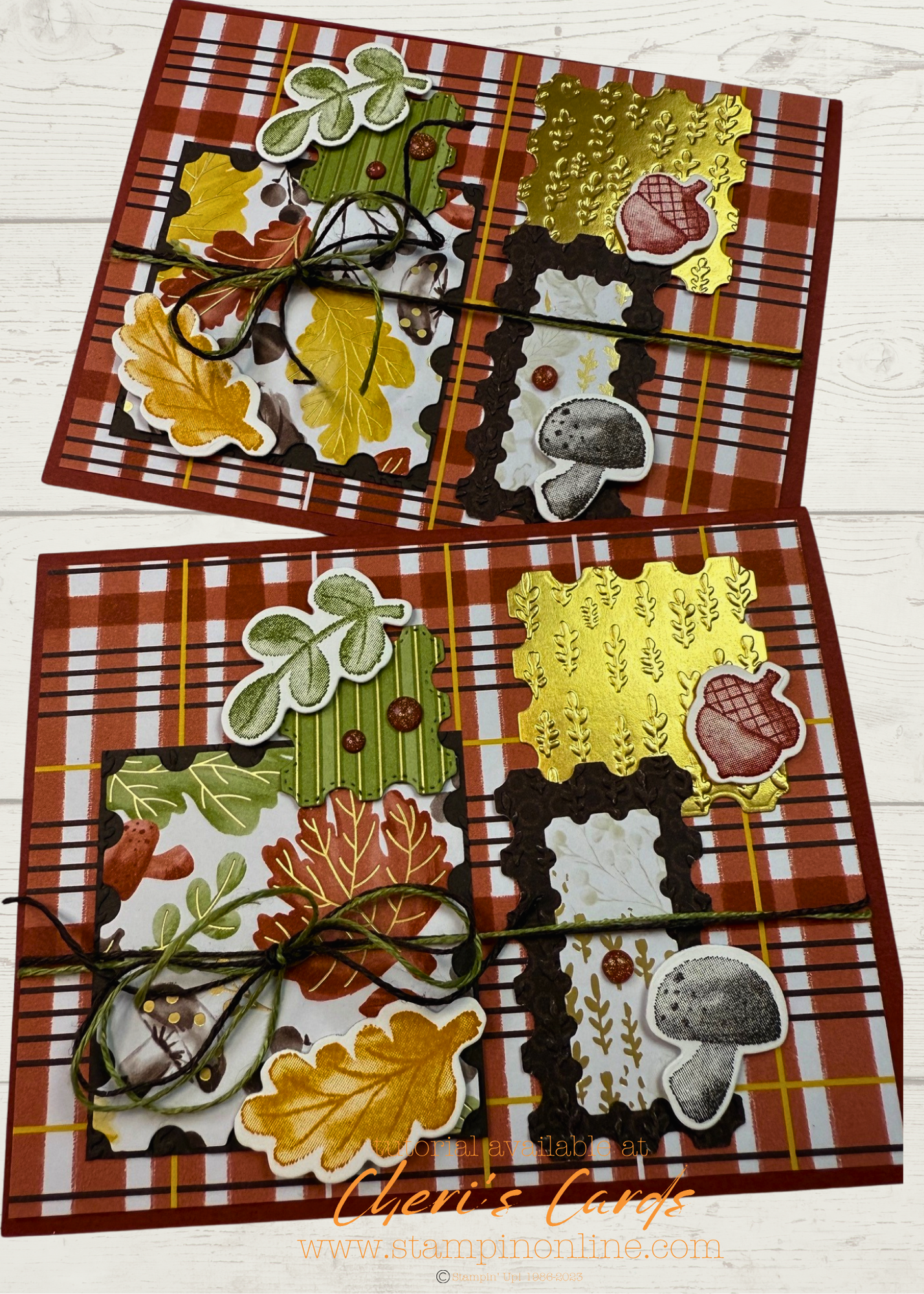 The beautiful specialty paper with the touches of gold are what ‘makes’ it feel all fall and cosy, but switch the colors to hues of greens or even purples and yellows and you can use the stamps and dies year round.