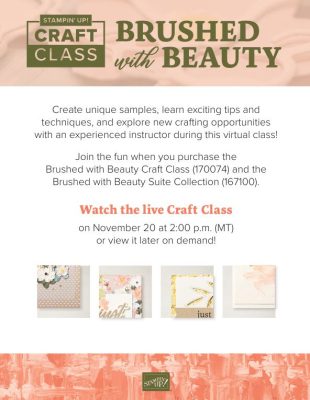 This suite is also the one that Stampin’ Up! has picked for their next online craft class. Make sure if you get the suite that you also add the class to your cart! (for those of you who have asked, I do get credit for your class purchase – just as I do with all sales!)