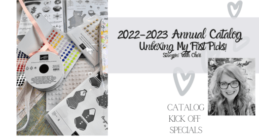 Hues of Happiness online class registration is now open. Information can be found here for all online classes Subscribe by May 10 to be part of my May Card Club. Details can be found here See what I got in my first order from the NEW 2022-2023 Annual catalog - then check back soon for my first card from this fun little haul! So many fun things - and if your list is too long - take a minute to think about joining my team. Not only will you get a fun discount on all your future … [Read more...] about Unboxing My First Picks 2022-2023 Stampin’ Up! Annual Catalog