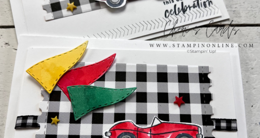 All my online classes can be found here 100 Days to the Indy 500. This weekend kicks off Nascar. AND just over a week left for you to get all the FREE Sale-a-bration items on your list! Being an Indy girl who can hear the roar of the track in my studio when the windows are open....I just had to use the Driving By set to create a Race Car(d)! I combined several fun elements to pull of this project. If you have not taken a second to check out the Hey Sports Fan suite in the … [Read more...] about Race Time! Driving By & Your Biggest Fan Quick Combo! Stampin’ Up!