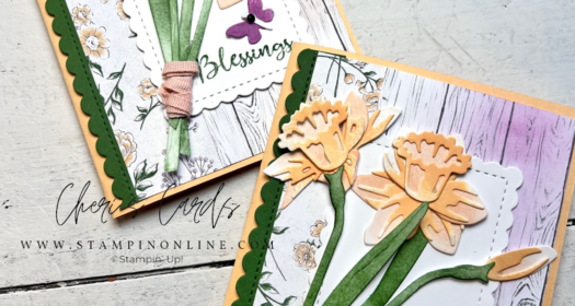 January Thank You gifts are above. When shopping online at www.cheri.stampinup.net make sure to use the current Host Code WM7WT9HM at checkout to redeem your gifts! If your order is over $150 - no need to use the code, as you will get free gifts from Stampin' Up and I will STILL send you your gifts from me! Thank you gifts are for orders placed on my website or via phone. Those participating in classes or in club get their 'gifts' in other ways : ) Please note: Monthly thank you … [Read more...] about Daffodil DIES! How To Create Your Bouquet ~ Plus Alternate Card Club Stampin’ Up!