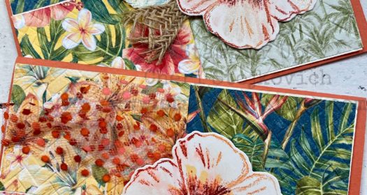 Today's tutorial is FULL of fun textures and colors! Check out the sparkles, four of the papers, layers of colors, new embossing folders, 2 ribbons with totally opposite looks - and those trinkets! It was one of the featured make and take products during our 24 Hour Facebook events for the girls who purchased the packets! Here is how you do it if you want to make it yourself: I used the Stamparatus to layer the ink colors on the flower and the leaf to mimic the ones in the fabulous … [Read more...] about Tropical Oasis with the Stamparatus Tutorial – Lovely Patchwork Card!