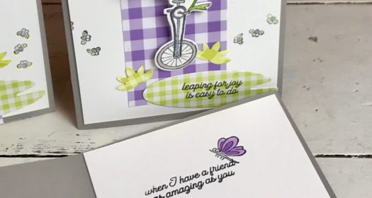 Did you fall in love with these little frogs back in January when Sale-A-Bration began? At our On Stage event in Orlando in November, the demonstrator who presented the set gave one of the funniest demonstrations ever as she did her project. We were in stitches. I liked the set - but the first time I used it - the ONLY part I was even willing to try to cut out was the little crown. I mean, I didn't want to amputate one of the poor fellas. Then - Stampin' Up! introduced the wonder … [Read more...] about Unicycle Riding Frog – Card in Motion – Video Tutorial