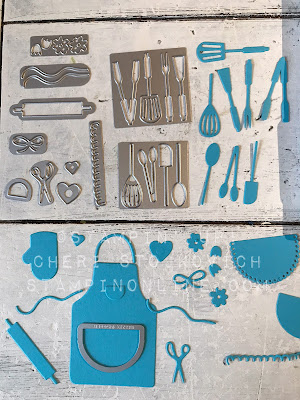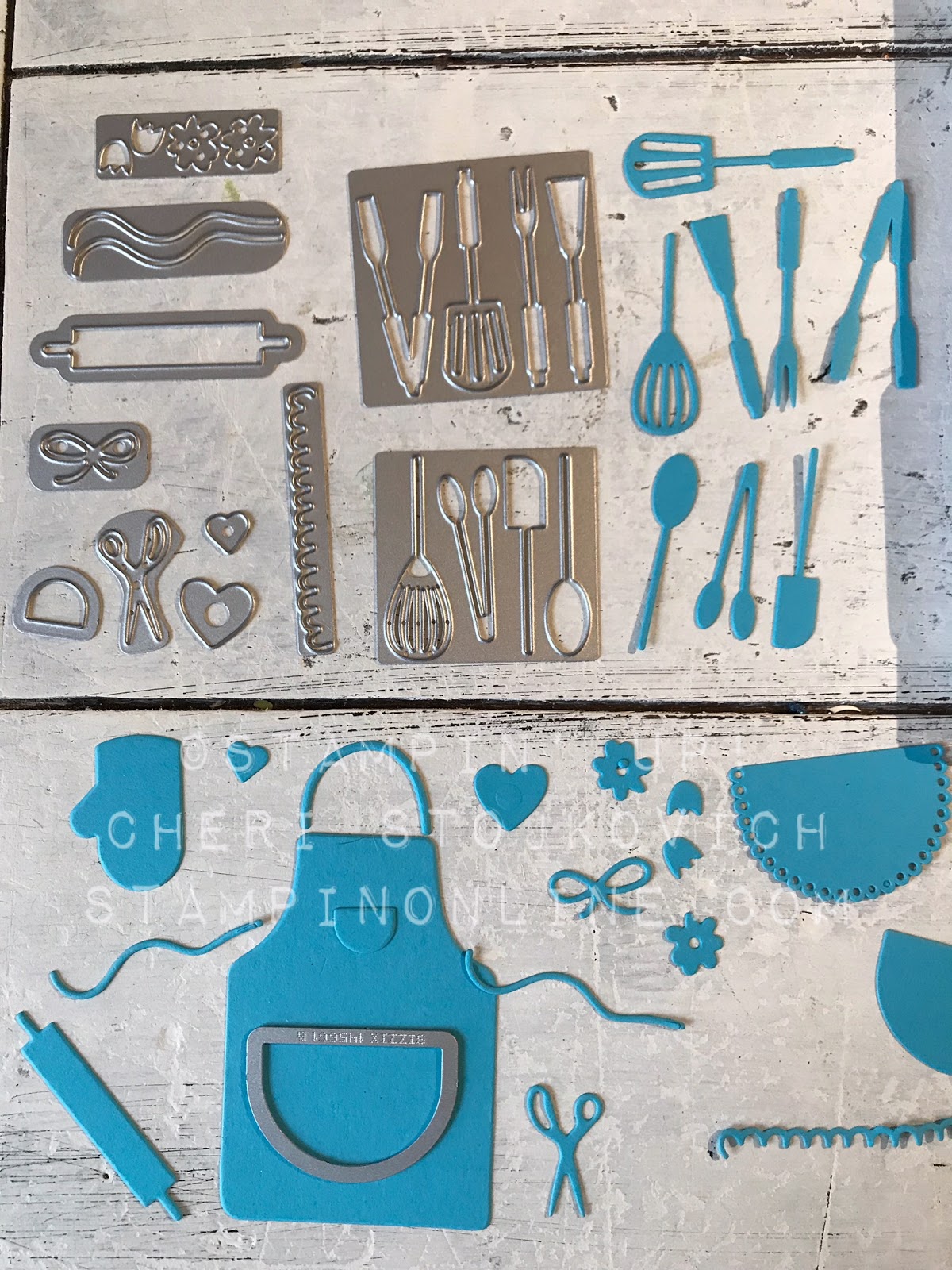 All of the tools can be used with the Apron or on cards, recipe cards or scrapbook pages completely without the apron. The scissors are fun with all kinds of crafting cards. The hearts and flowers can be used on multiple projects year round.