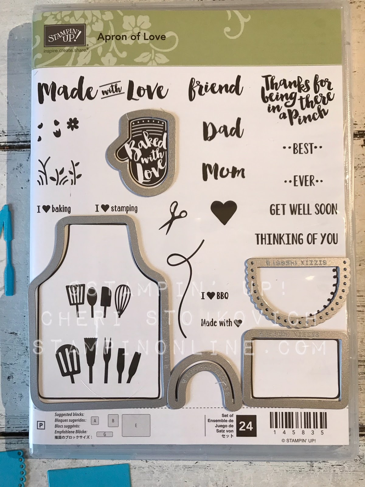 While the Apron stamp set and die are not on the retiring list – they will not continue on as a bundle, so the 10% discount will cease at the end of May when the Occasion Catalog ends, so if you would like to purchase it, now is the time!