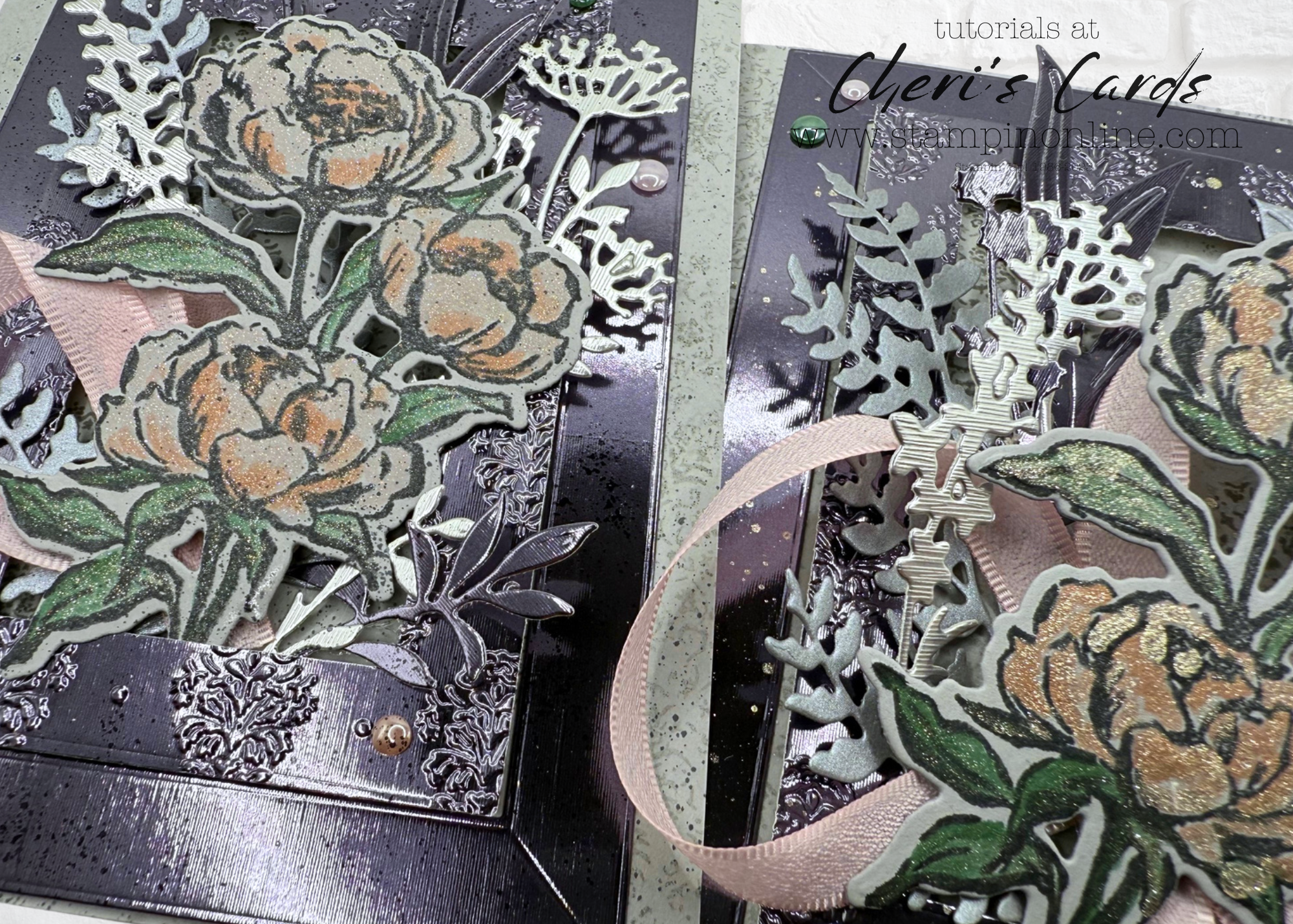 I stamped on Smoky Slate and use Wink of Stella to color in the flowers. In person they are so very sparkly.