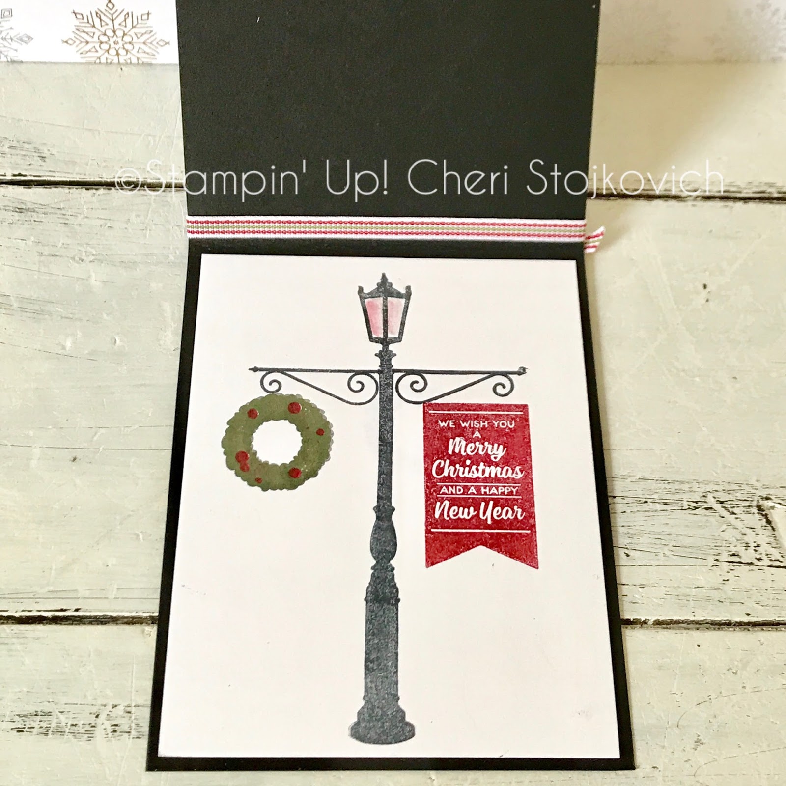 The Designer Series Paper used is a sheet from one of my favorites this Holiday Catalog – Christmas Around the World. The images on this sheet bring memories of the UK – but for us Indy folks – there is a definite nod to the tree we visit every Christmas Eve as a family – our tree of lights on the Circle.