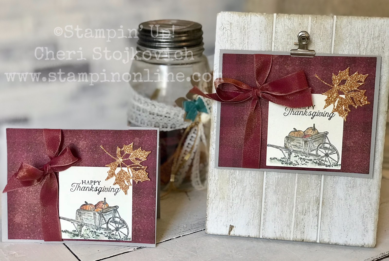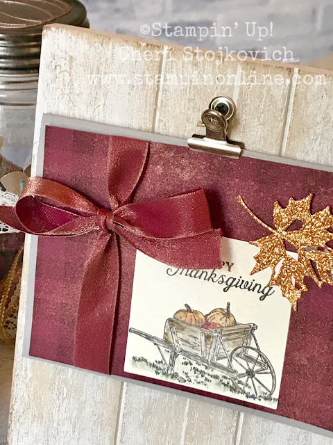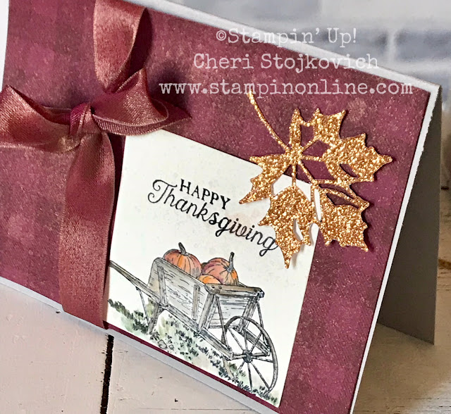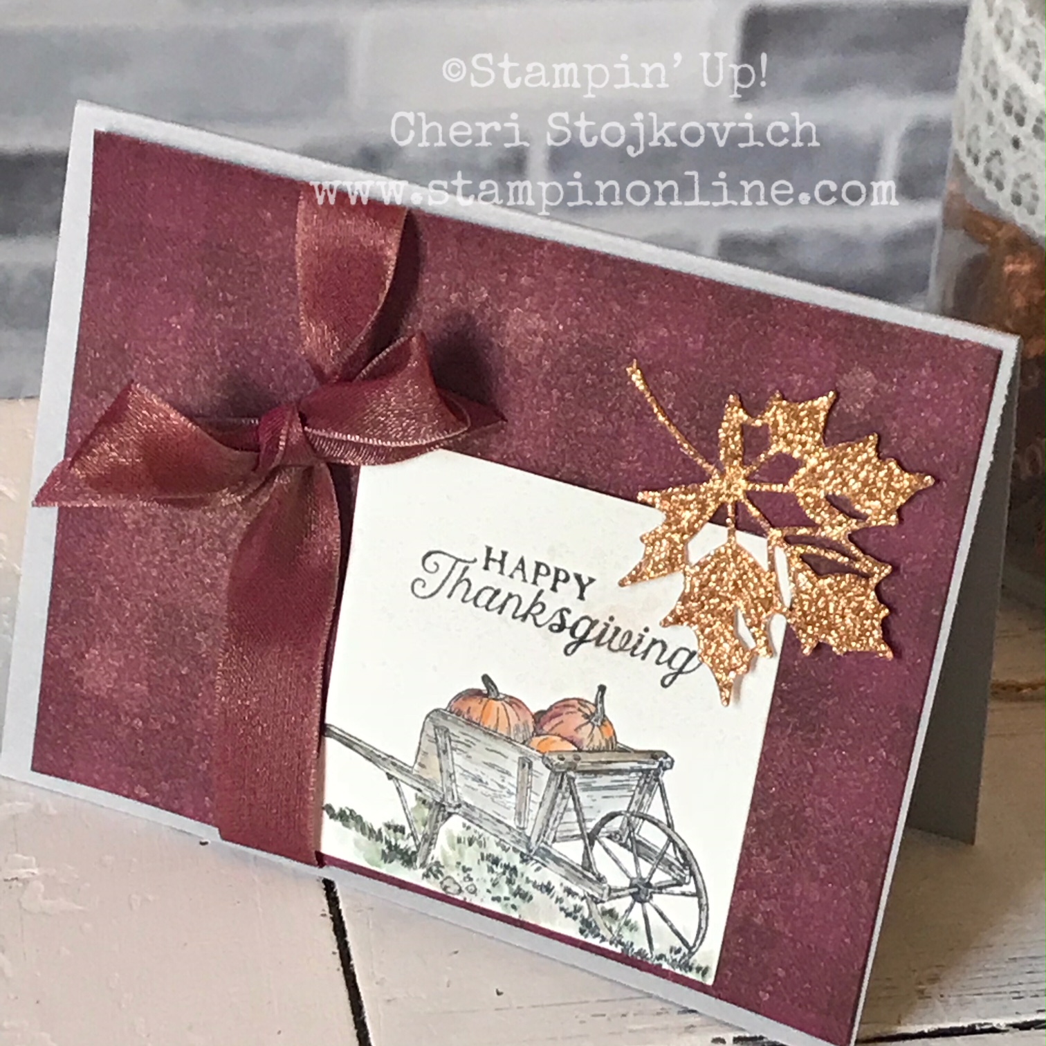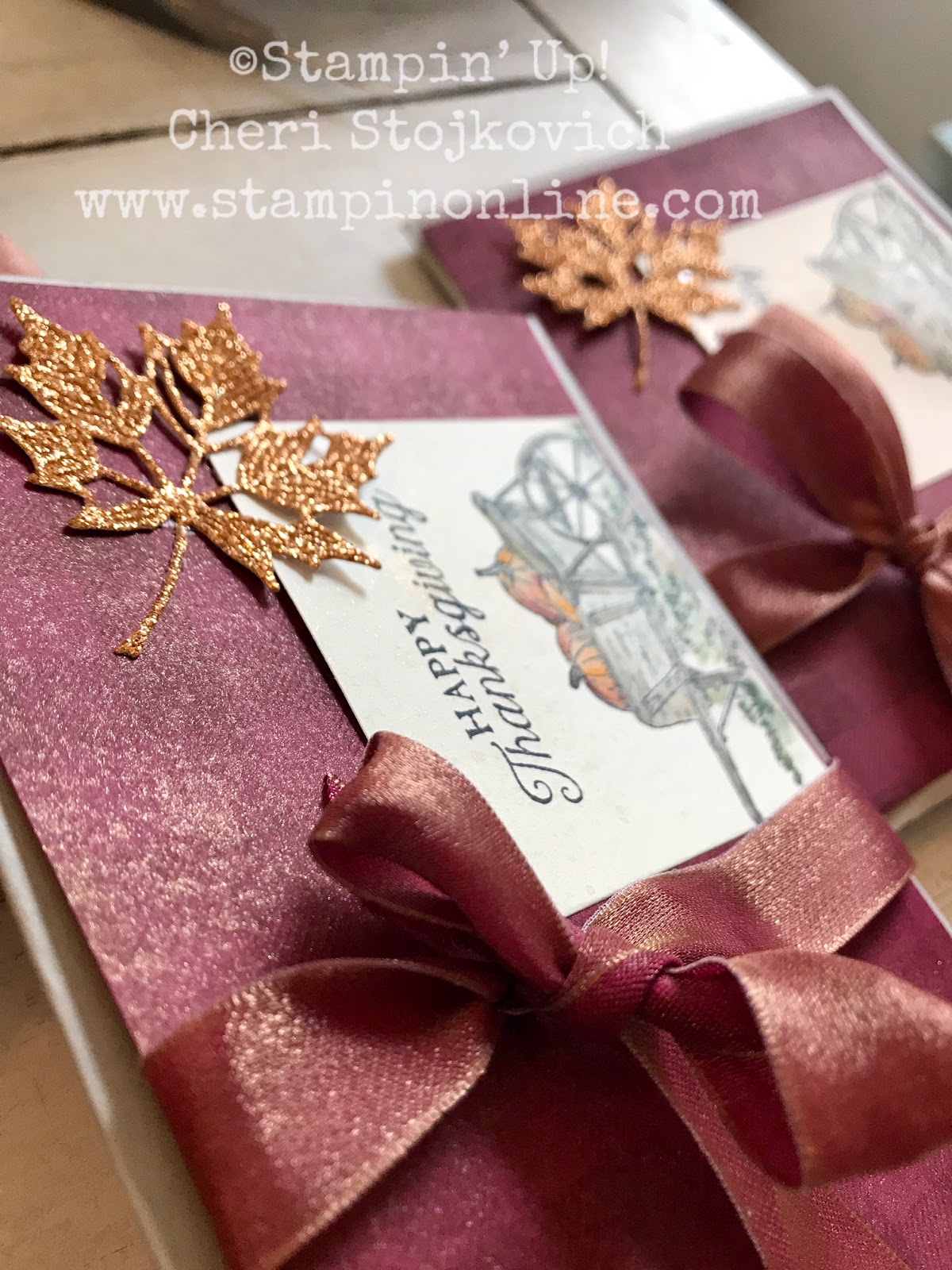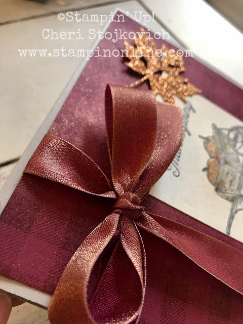 Today’s post – did you come FROM the video tutorial? If so, good! Because the still pictures do a much better job of capturing the shine of the Merlot Copper Reversible ribbon and the Spritzed Copper cardstock! (still no substitute for in person – but better!)