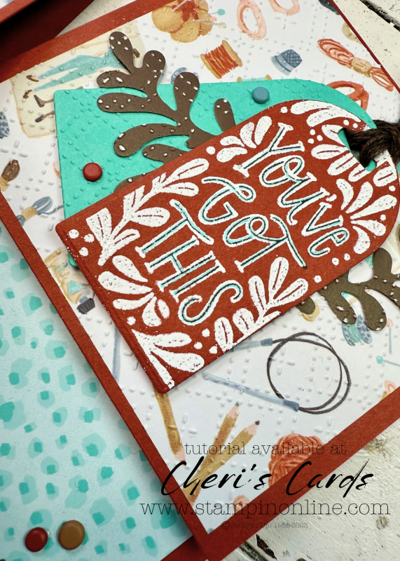 The project also features the twine from November Card Club as well as the add on embossing folder and the embellishments that Club members can earn free this month.