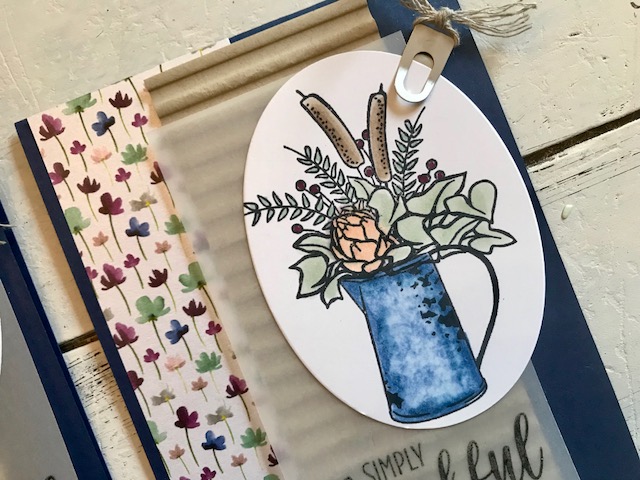 I have used this stamp set once already here with a sneak peek (it is the same one that was on my Cotton Card!) – but here I didn’t match it up with the DSP that is part of it’s Suite. I will let you watch the video to learn how I came up with the mixing of 3 different product suites to achieve the look I was going for!
