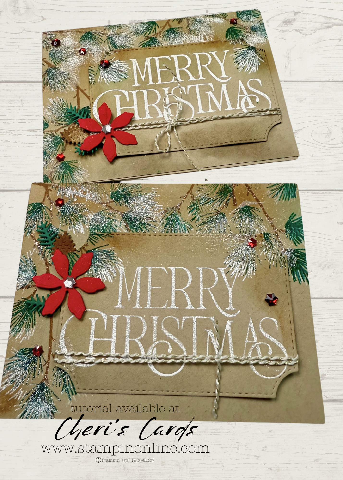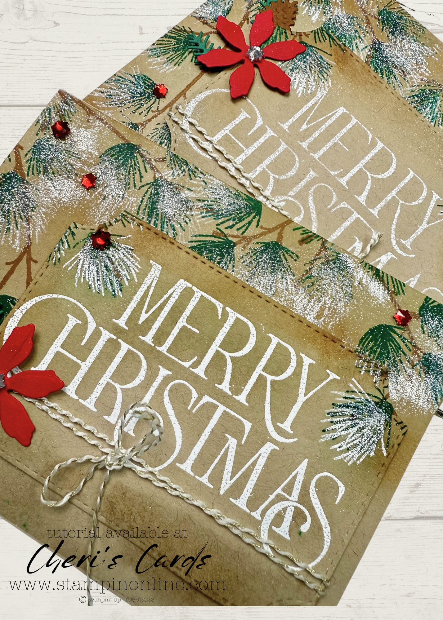 I am having SUCH a good time designing with the October Card Club bundles and all the add ons! Today’s card uses Delicate Pines, Branching Out AND the Merry Christmas. Check back Friday for one last card that features an add on! If these sets are on your list, it makes October the PERFECT month to join my online Card Club – you can add any/all of the bundles at a nearly 20% discount. Find all the information about my Card Club HERE – subscribe by the 10th of this month to add on these bundles!
