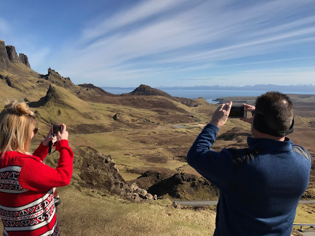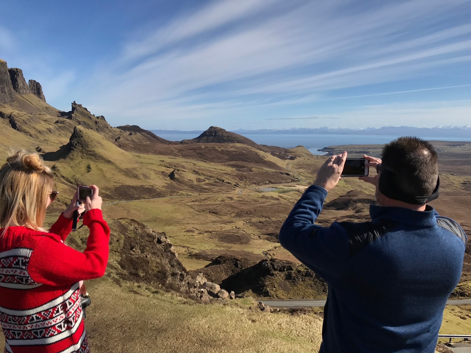 The traditional postcard views shift in scale and perspective as you travel along the road and visitors may be tempted to drive crane-necked in order to see it all. The road is single track in places and a better plan is to use the passing places provided. Those who climb out of their cars are rewarded with the most splendid views. The inadequate parking at the Old man of Storr and at the Quiraing requires common sense to be applied for the sake of safety.