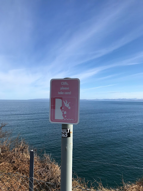 Staffin – the “liberal sprinkling” of houses – liberal must mean something else to them! Unfortunately everything was closed, so we were not able to get any wooly hats or frying pans, or a WC…..