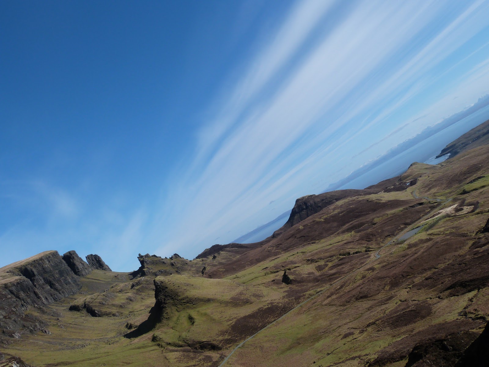 The Trotternish Ridge was formed by a great series of landslips and the Quiraing is the only part of the slip still moving. In fact,the roads require repairs each year.