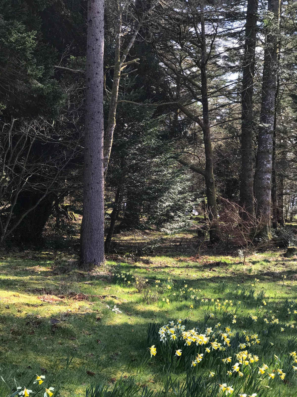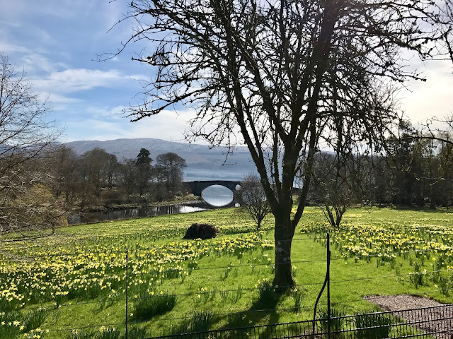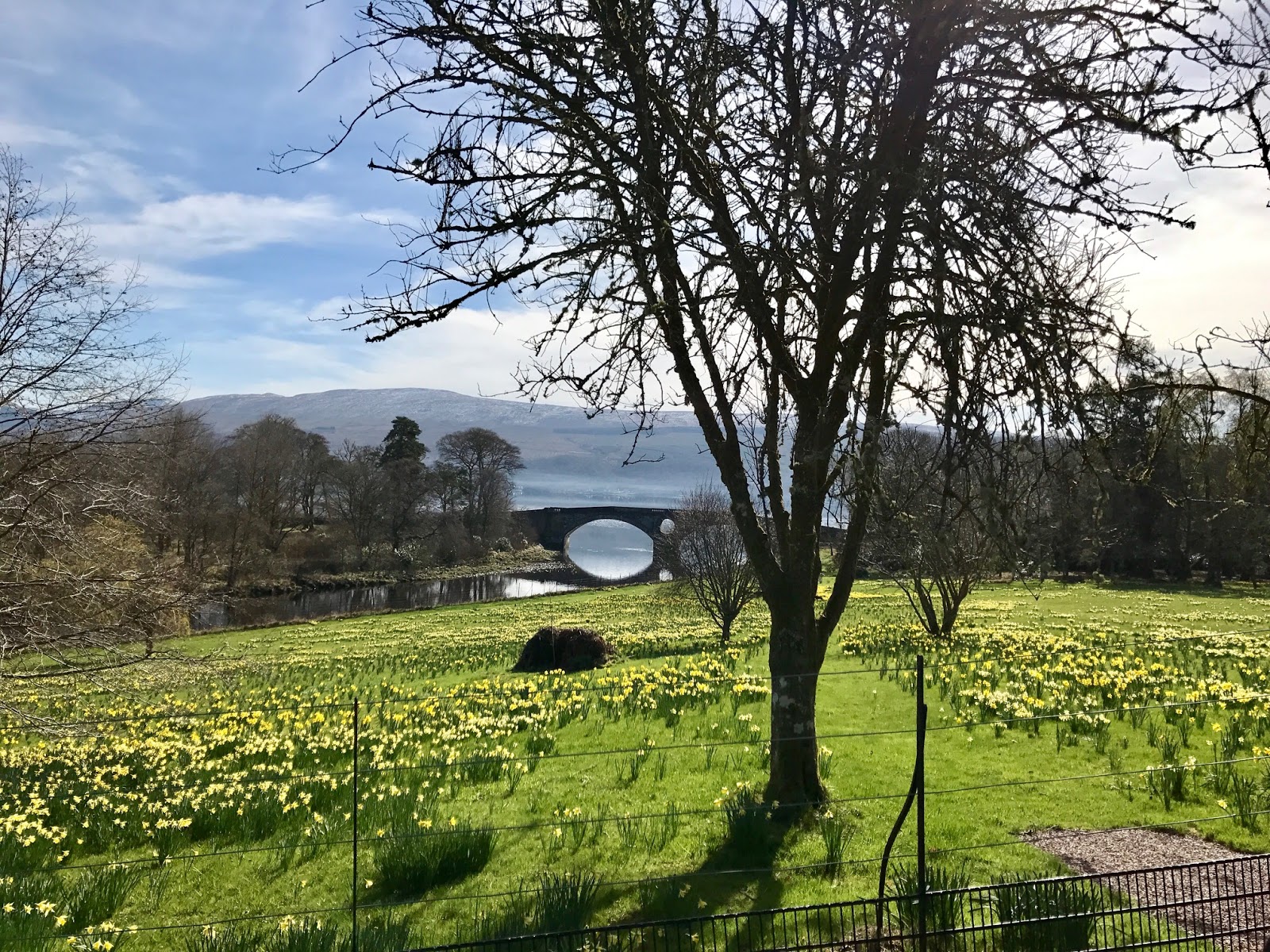 The weather was gorgeous! Daffodils were blooming everywhere. The yellow of the flowers, with the blue sky and the white that was remaining snow on the highlands in the distance….. so pretty!