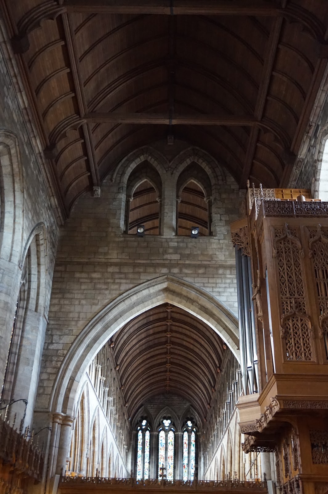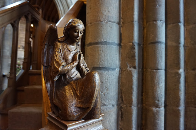 There are carvings all over the church. Each pew has an an animal carved on the end. Each animal is to remind you of a Christian virtue. The pews also have flowers carved in them and no two flowers are repeated on any of them.