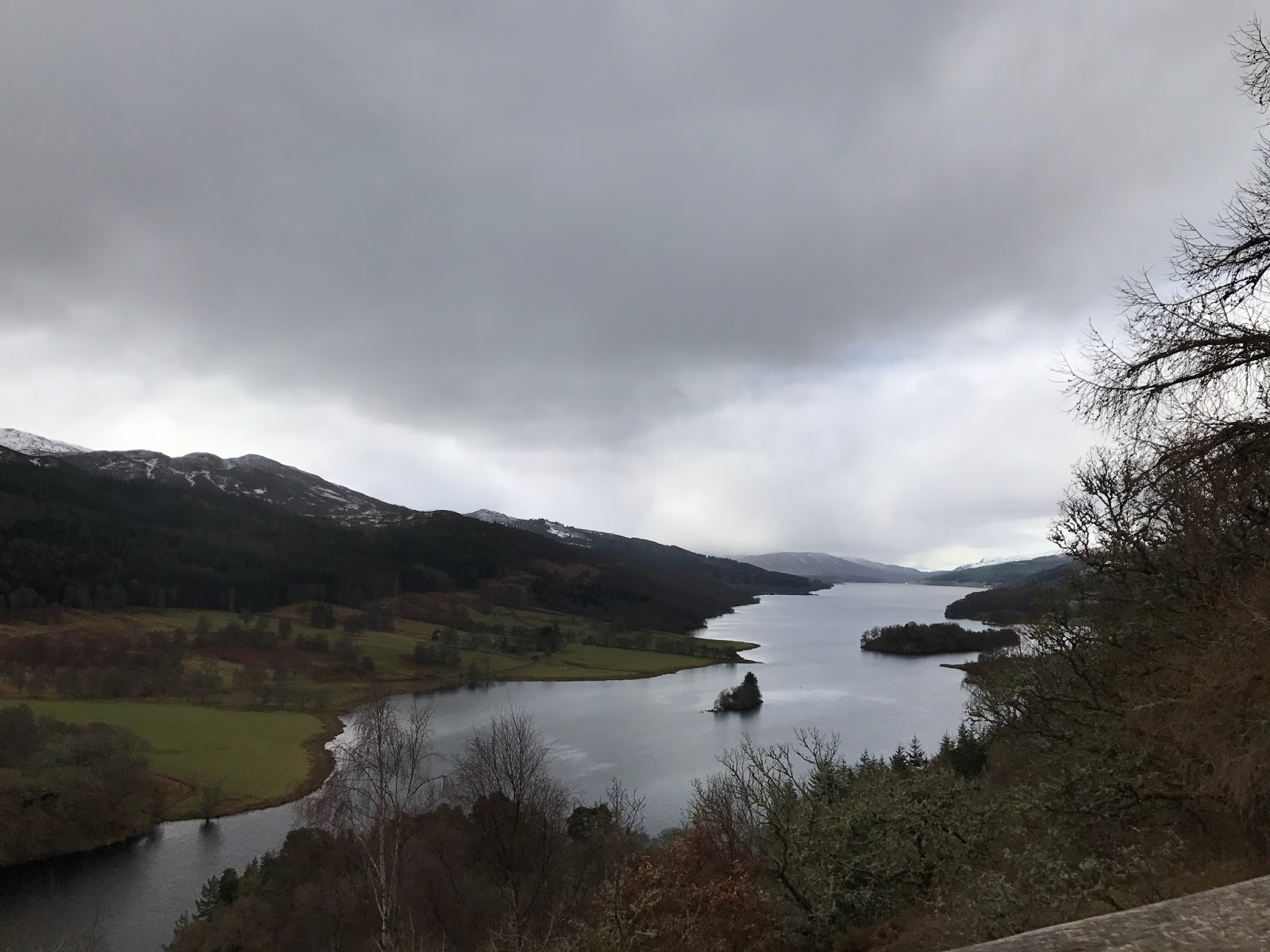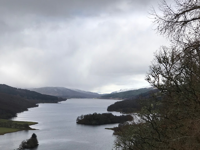 Loch Tummel is long and narrow. It is surrounded by forests. In the summer it would be a wonderful place to hike. While planning our trip, we saw a lot of pictures of the places that made it to our list of stopping points. There are some incredible ones of Queen’s View in the autumn.
