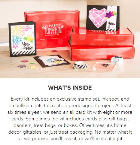 paper pumpkin arrives to your door each month – with everything you need to complete 8 cards – (or some months it is other projects, you can visit their website for past projects)