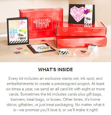 Each month you get a STAMP SET and A STAMP INK SPOT – sometimes there are even other surprises!