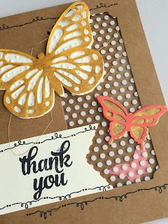 Several of these cards are from the retired Tin of Cards (good news – is you can get the NEW tin of cards today from the 2016-17 catalog!). One of the cards you will see is attached to a bridal shower gift – so easy and so cute. I took the cards – basically ‘as is’ from the kit and stepped them up simply by adding the gold Wink of Stella and some texture from the Big Shot! super cute and super easy!