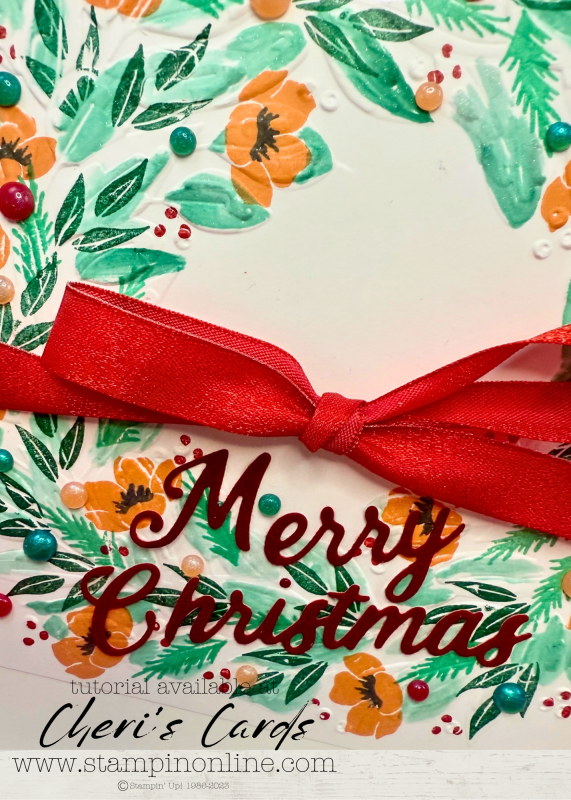 Stamping over the embossed folder gives ‘life’ to the wreath. So fun!