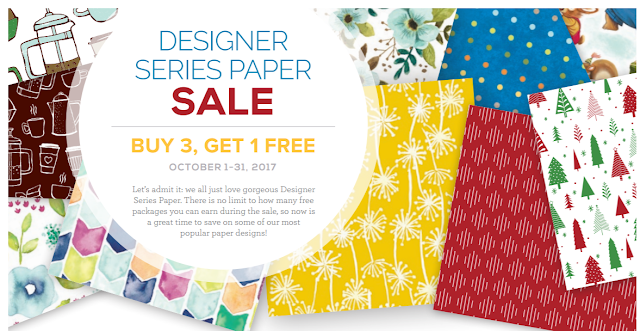 One of the Specials Stampin’ Up! is offering the entire month of October is a selection of Designer Series Papers offered as part of a Buy Three Get One Free package!!