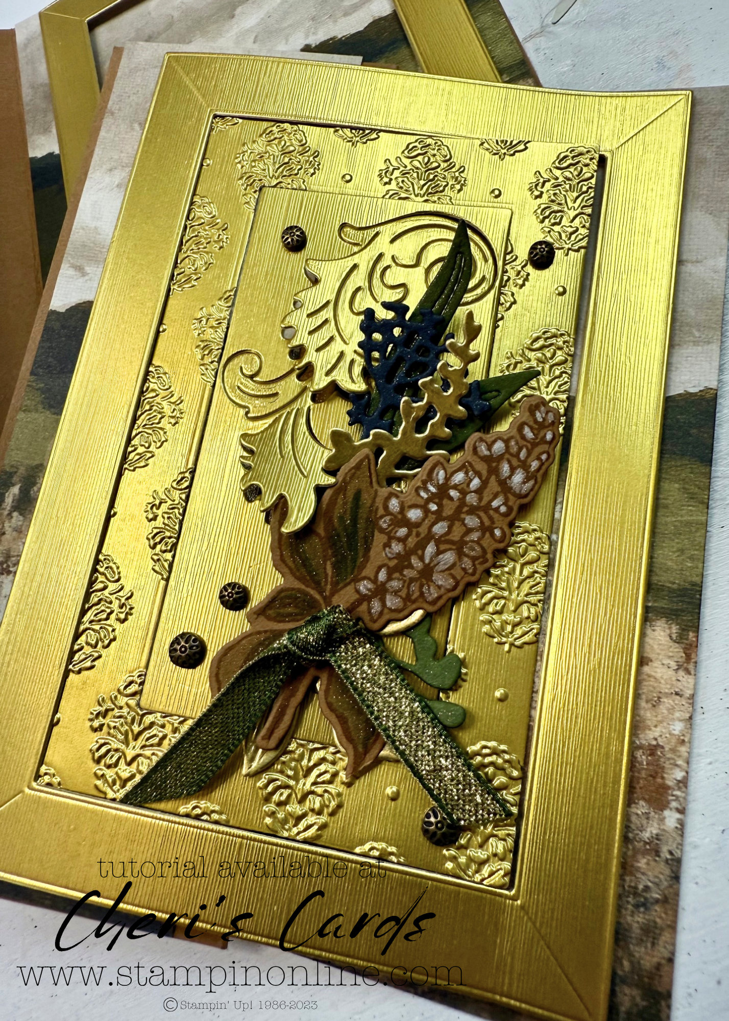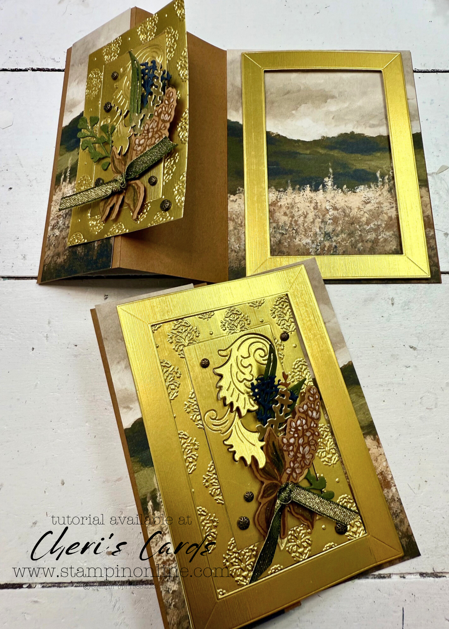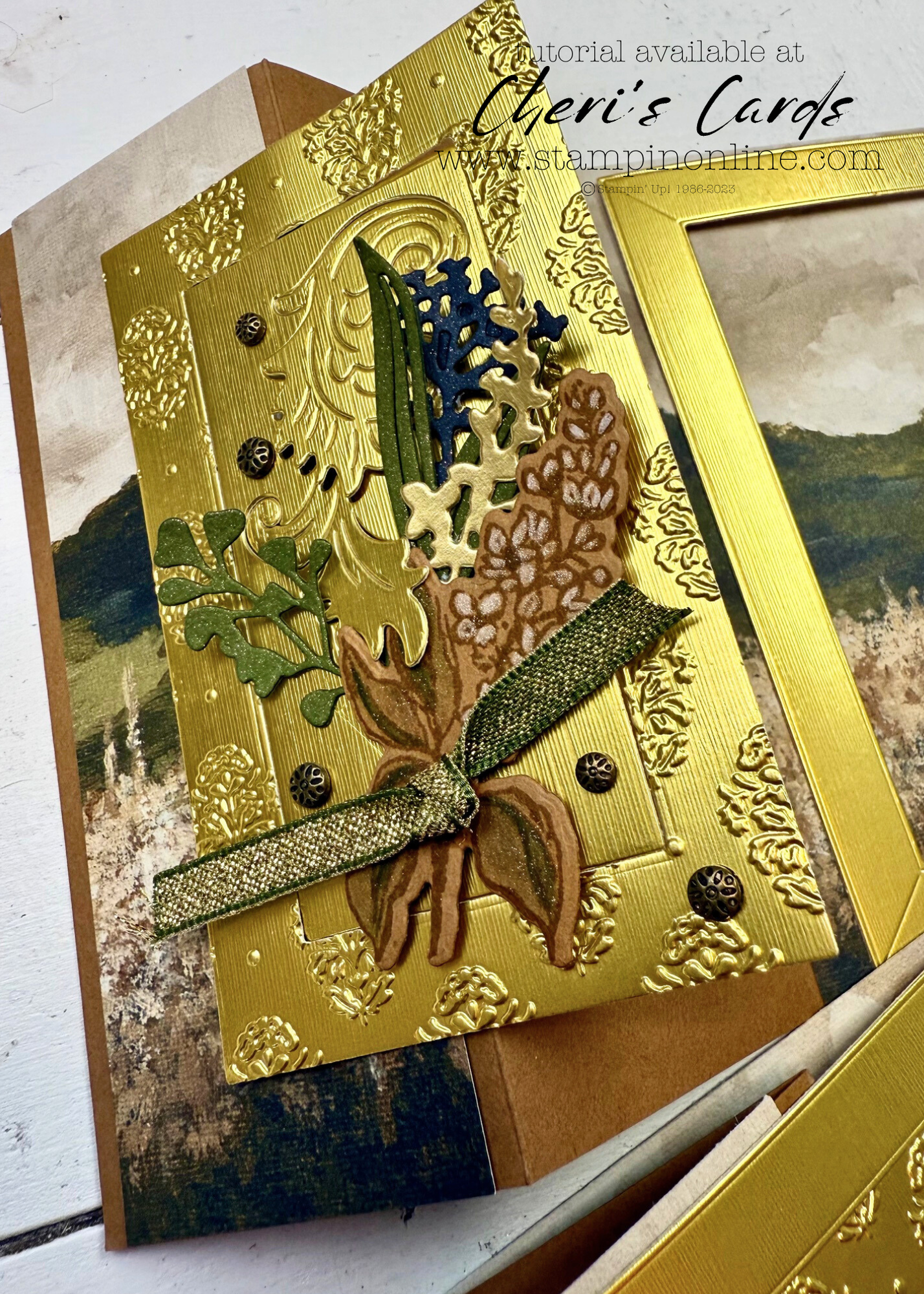 As is never having to throw away shimmery die cuts! This card uses one of the dies that partially cuts – so pretty!