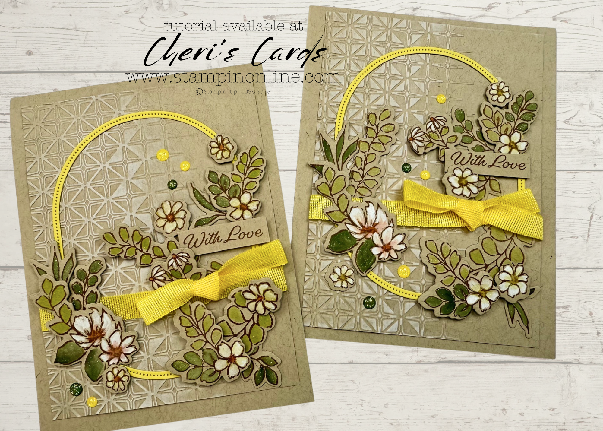 Check the catalog samples for how beautiful this bundle is when creating with it on Basic White cardstock. I wanted to try some different looks, so none of mine will be on white!