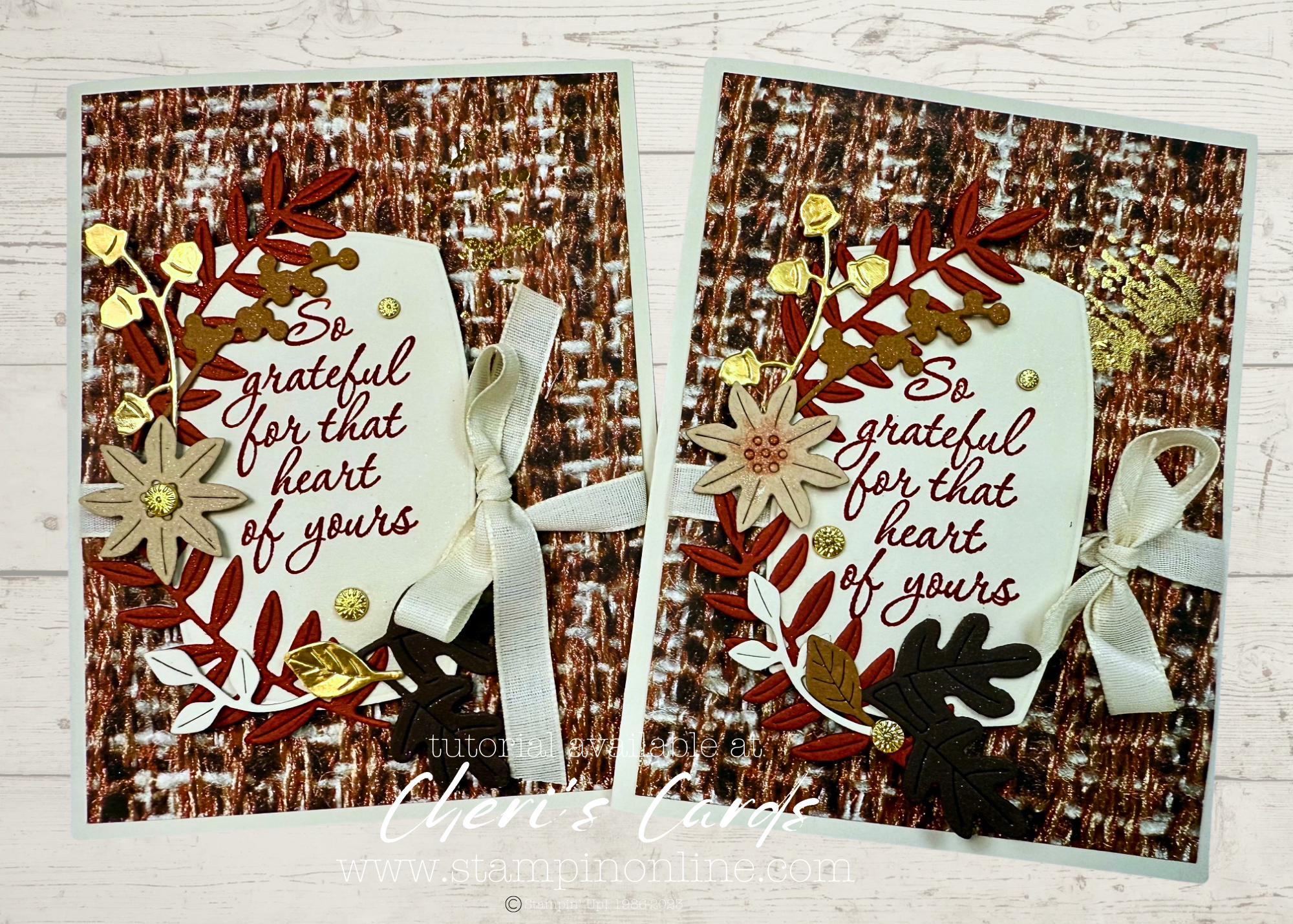 While this card has a fun fall feel, it can easily be adapted to any season with a switch of the DSP and colors of your die cuts.