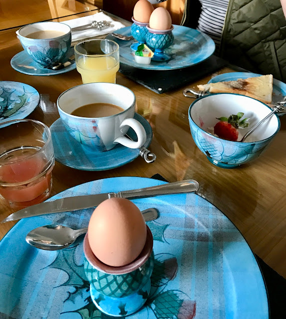 Scottish breakfasts are a funny thing to me – eggs on a cup. Perfection. Porridge. A stage above perfection. Black pudding. Well………. lol.