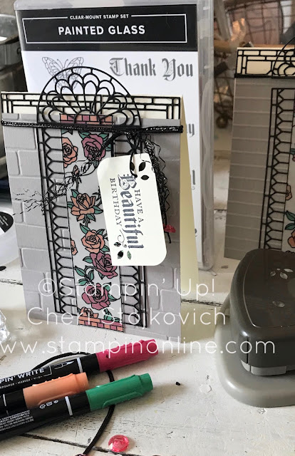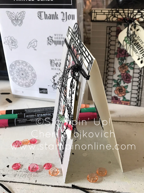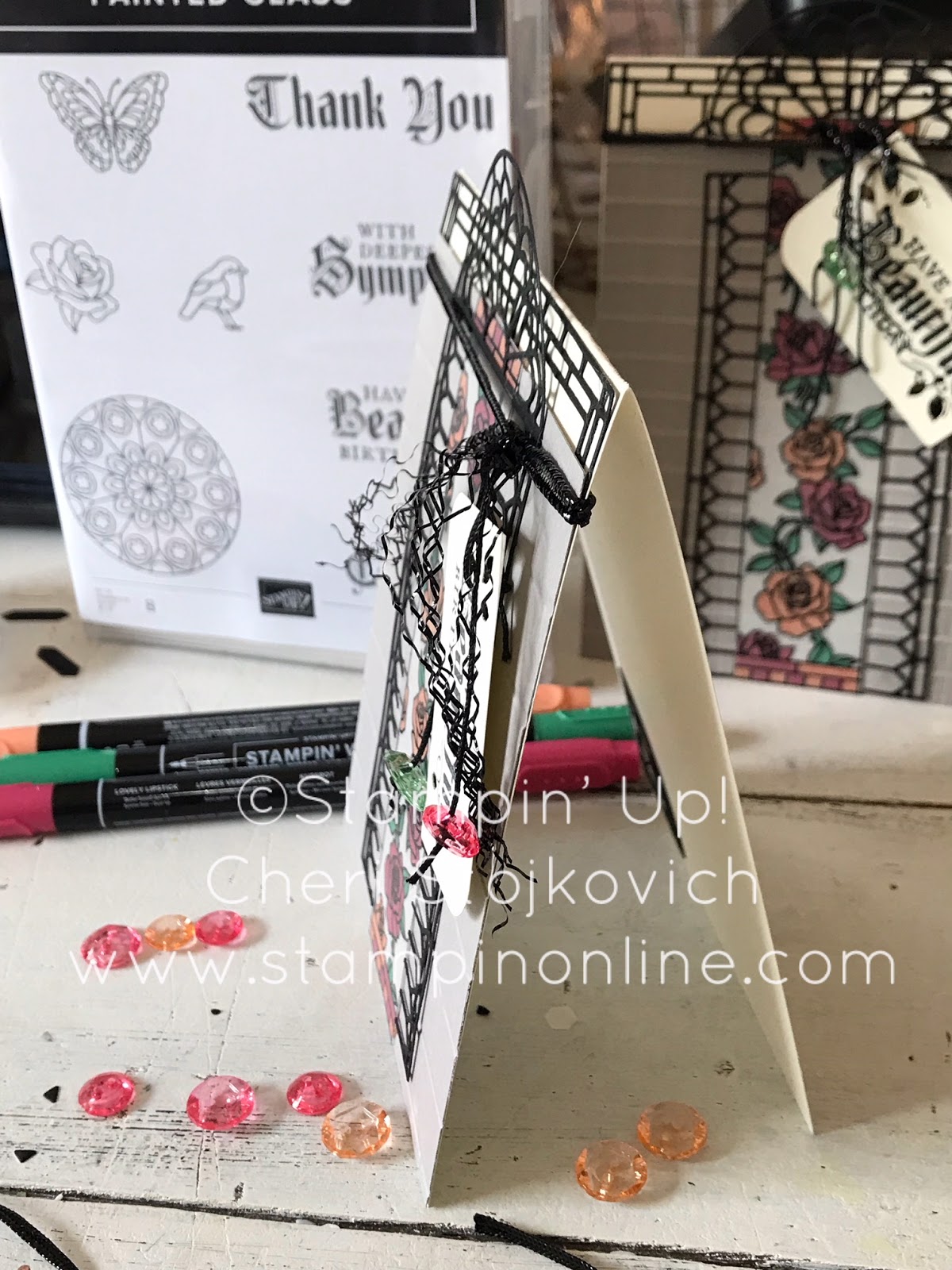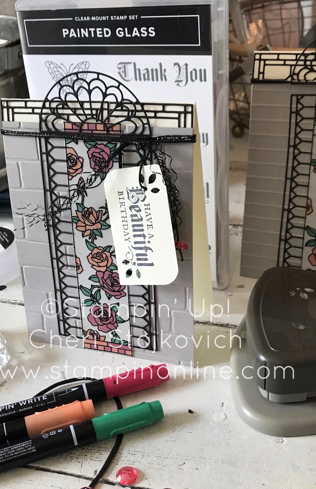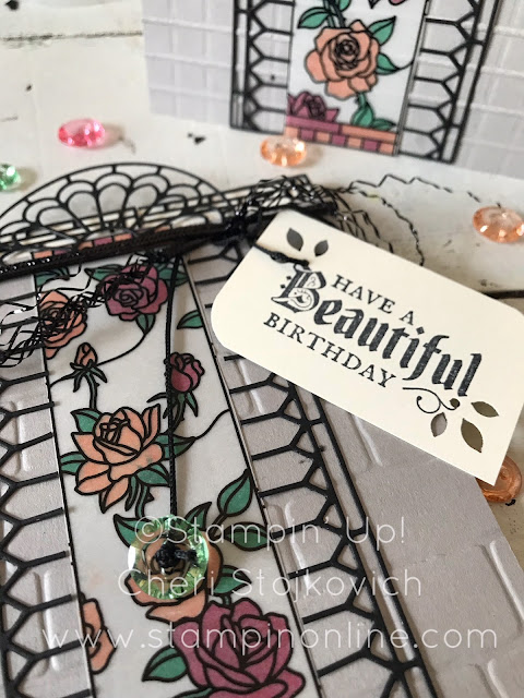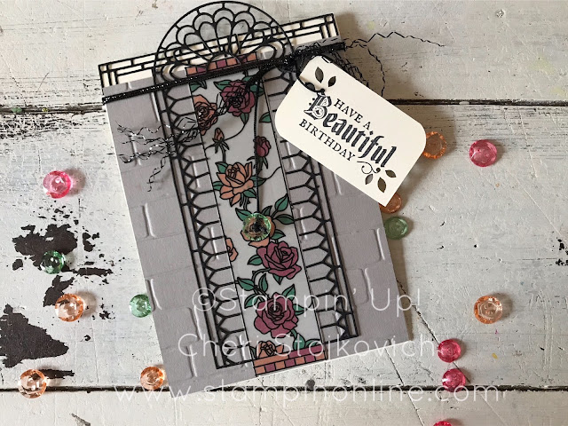 This is another Sneak Peek bundle from the upcoming June release of the Stampin’ Up! 2018-2019 Catalog! Reminds me a little of Beauty and the Beast… a little of the cathedrals in Italy, Slovenia and Scotland that we have visited on recent trips – and even of my very first days of stamping – when coloring on the back of vellum was ALL the rage!