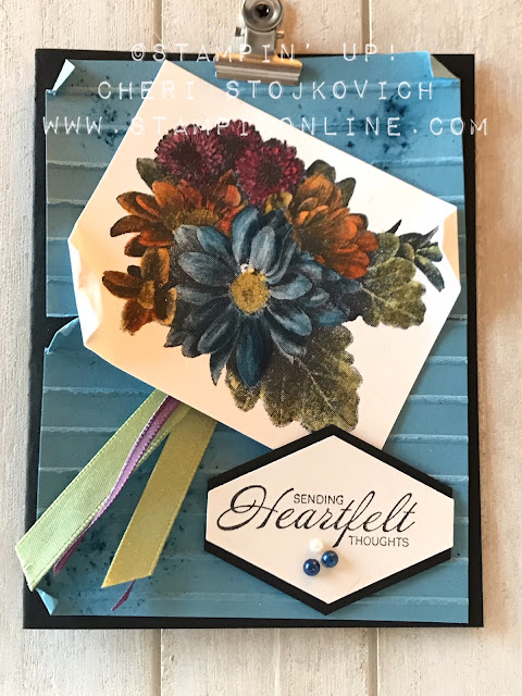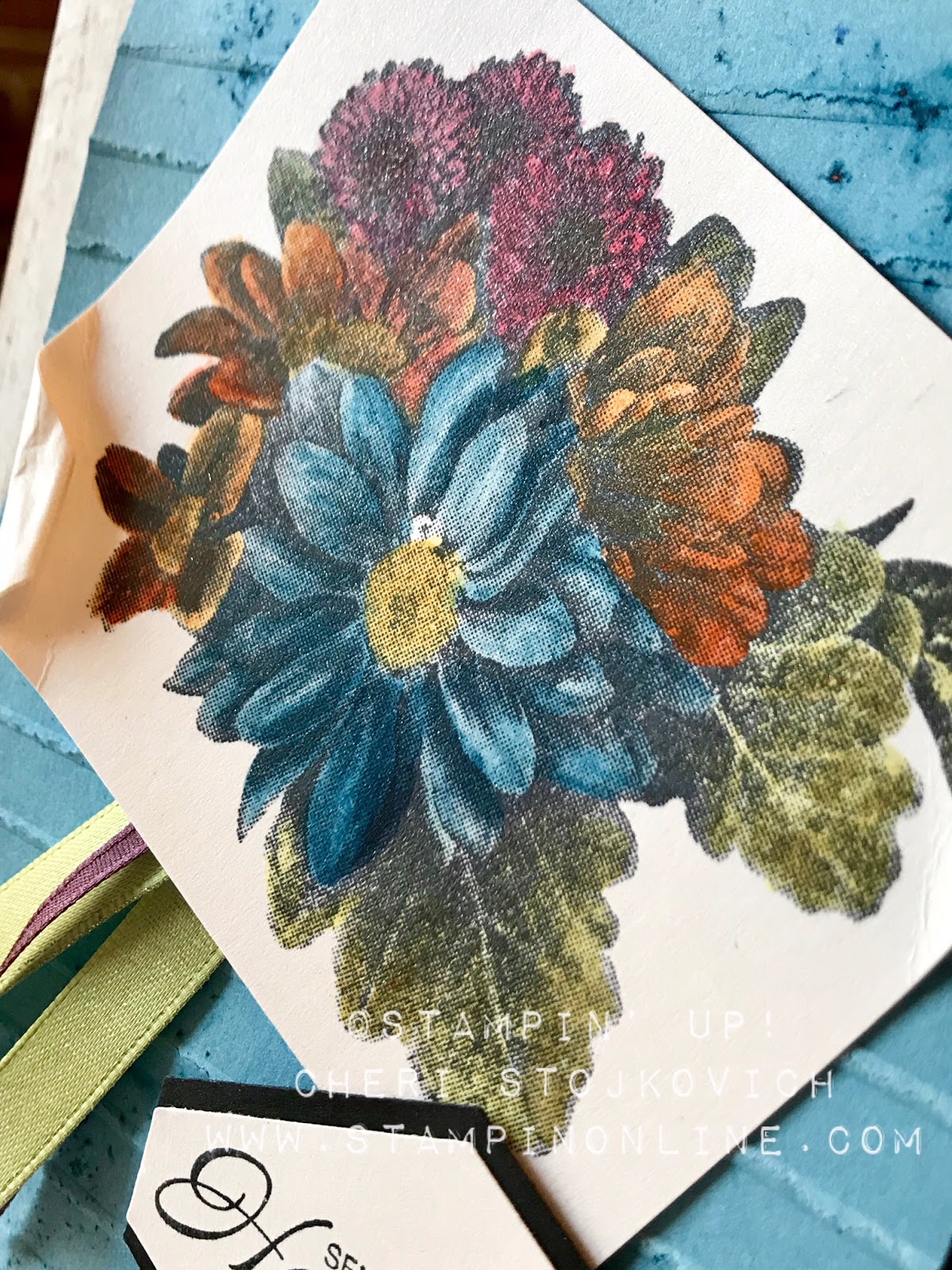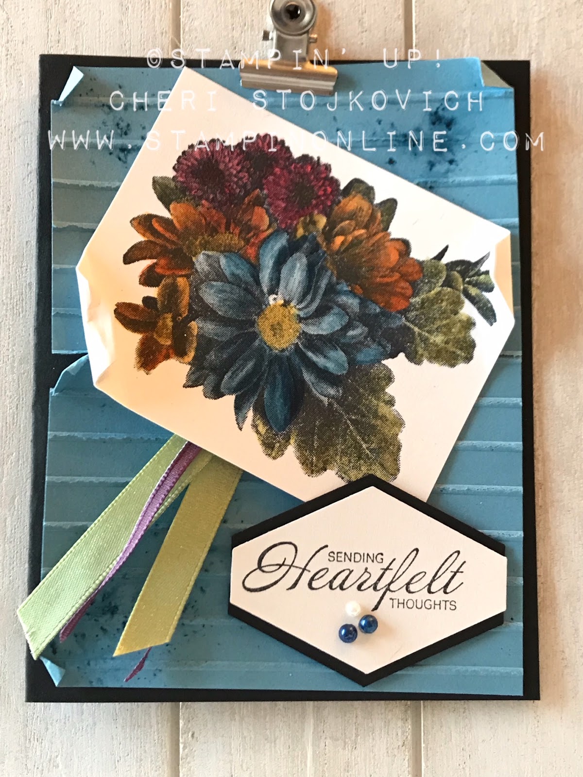 The embossing folder I used tends to rip through all of the cardstock. For this design, I just went with the rips and let it add to the Shabby Chic look. This style was popular with our card designs back in the 2000’s – I did resist the urge to tear the paper and sponge!