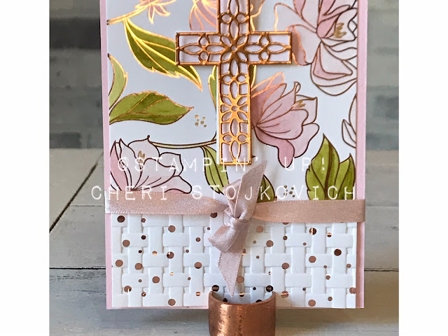 This one combines the lovely bundle Hold on to Hope. I will do another post on it in the near future with some of the sentiments and show you more of the dies. This one I wanted to throw in the STUNNING Sale-a-bration papers since you literally just have days left to get them into your stash!