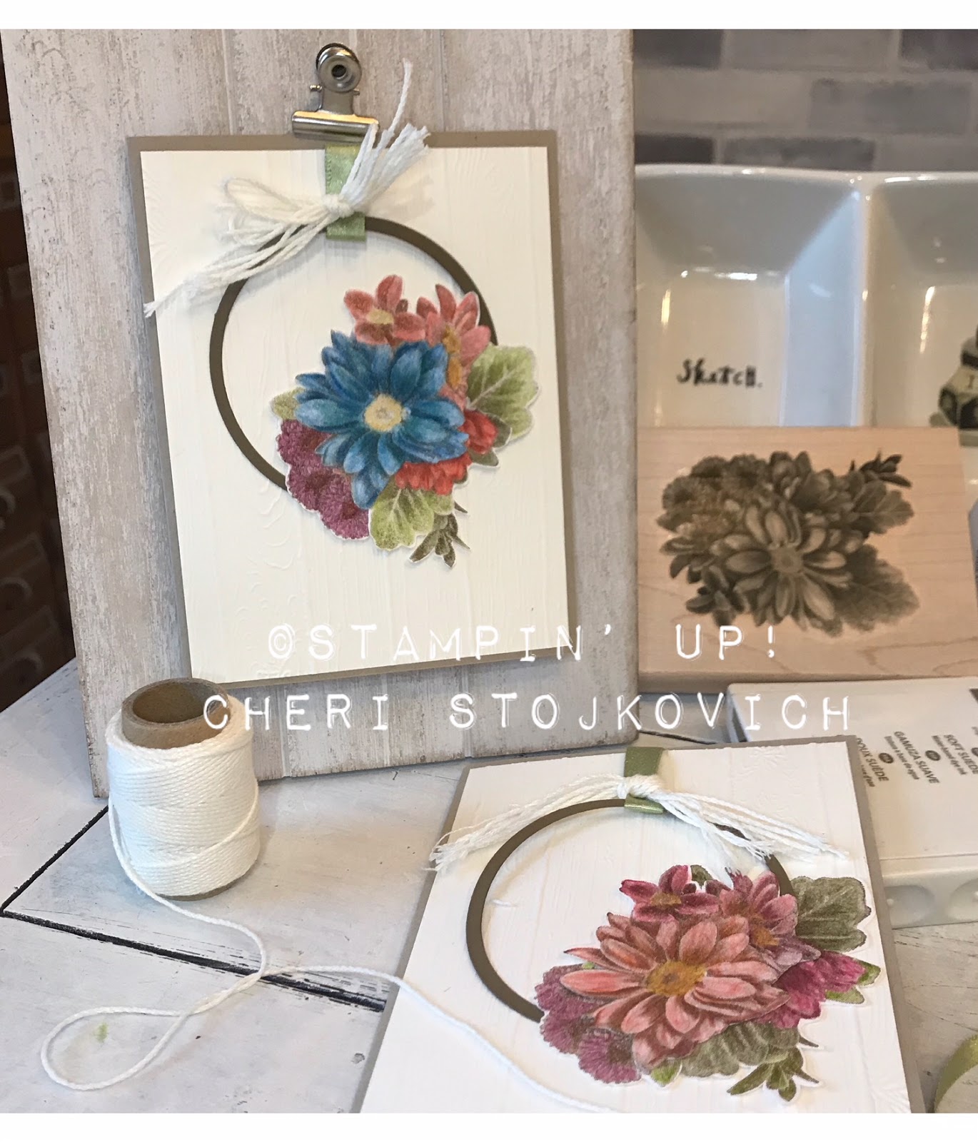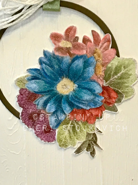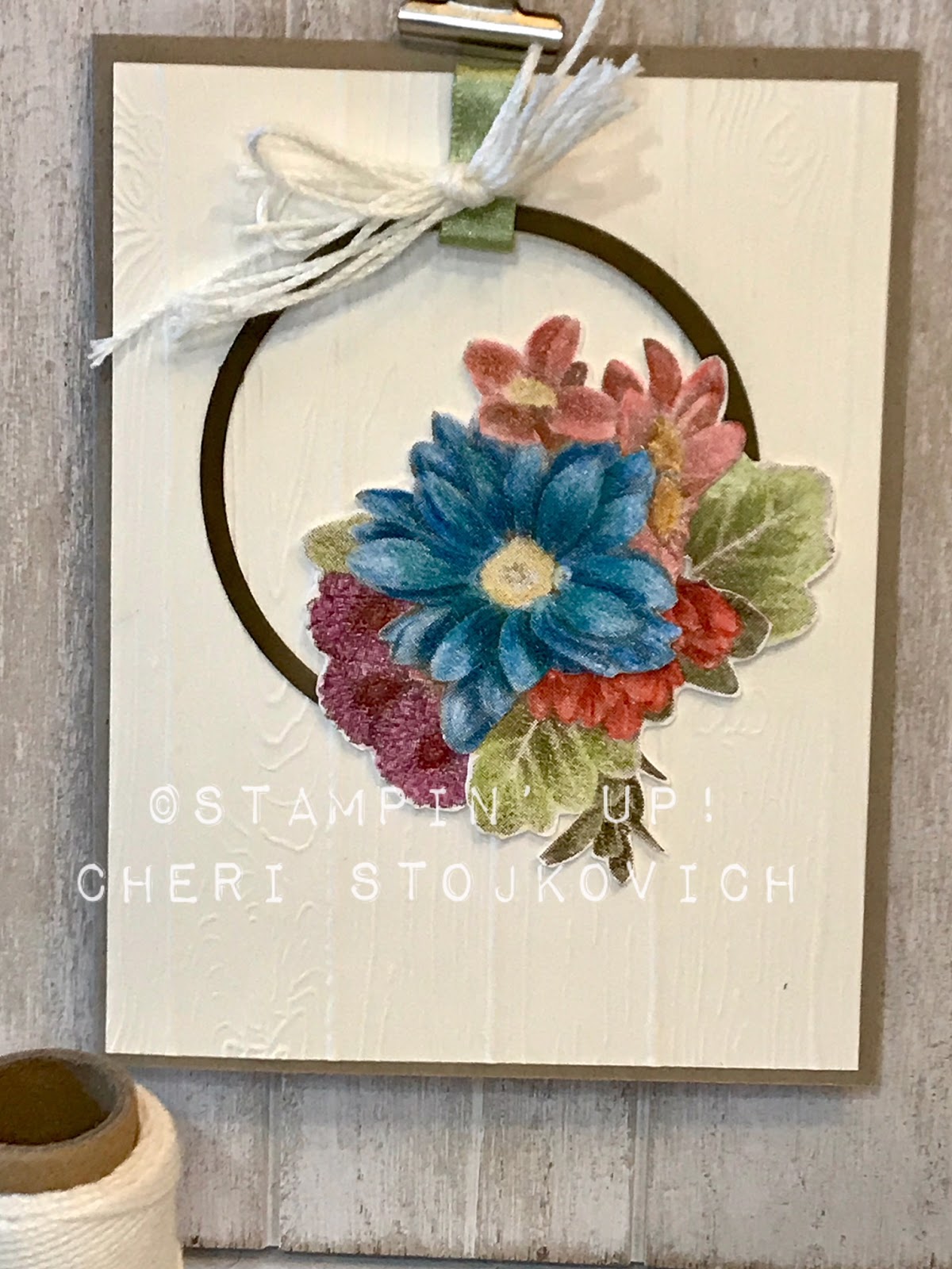 The Hoop wreaths are so trendy right now – both in wood and metal. I think the Heartfelt Blooms may be a tad too big for my “hoop” – I was tempted to leave the largest flower off for scale, but it is just so lovely that I couldn’t. To be honest, I had colored the image a couple of weeks ago and it had been lying on the table. I had been at a loss as what to do with it.