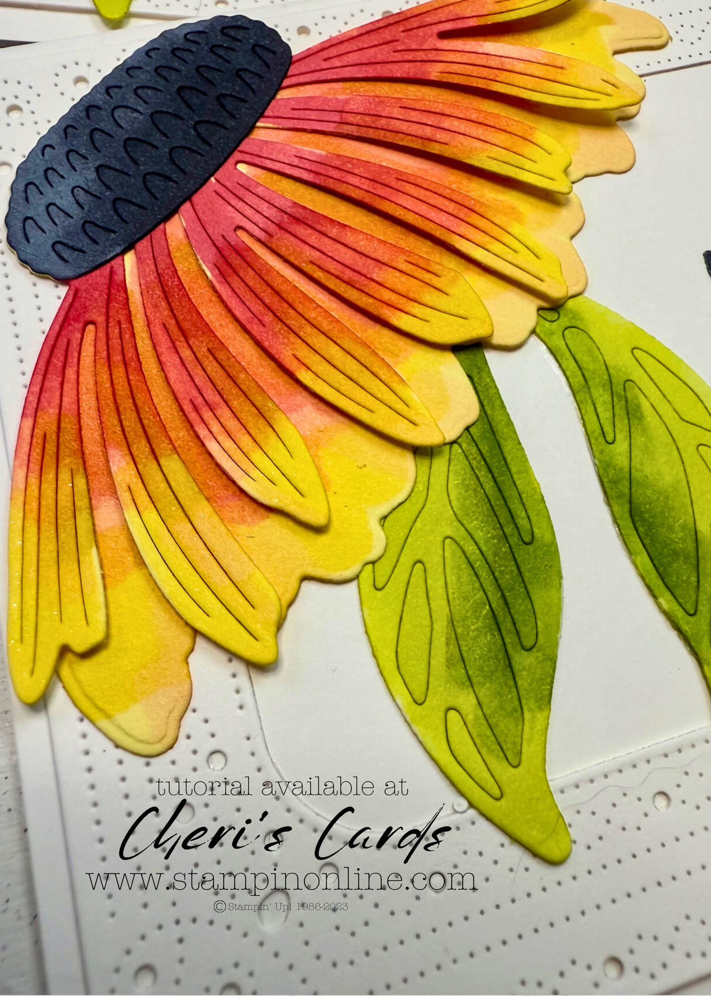 I love that the Blends give such great color coverage when you start with a solid color cardstock. Mixing colors on the petals and leaves of this die brings the whole thing to life.
