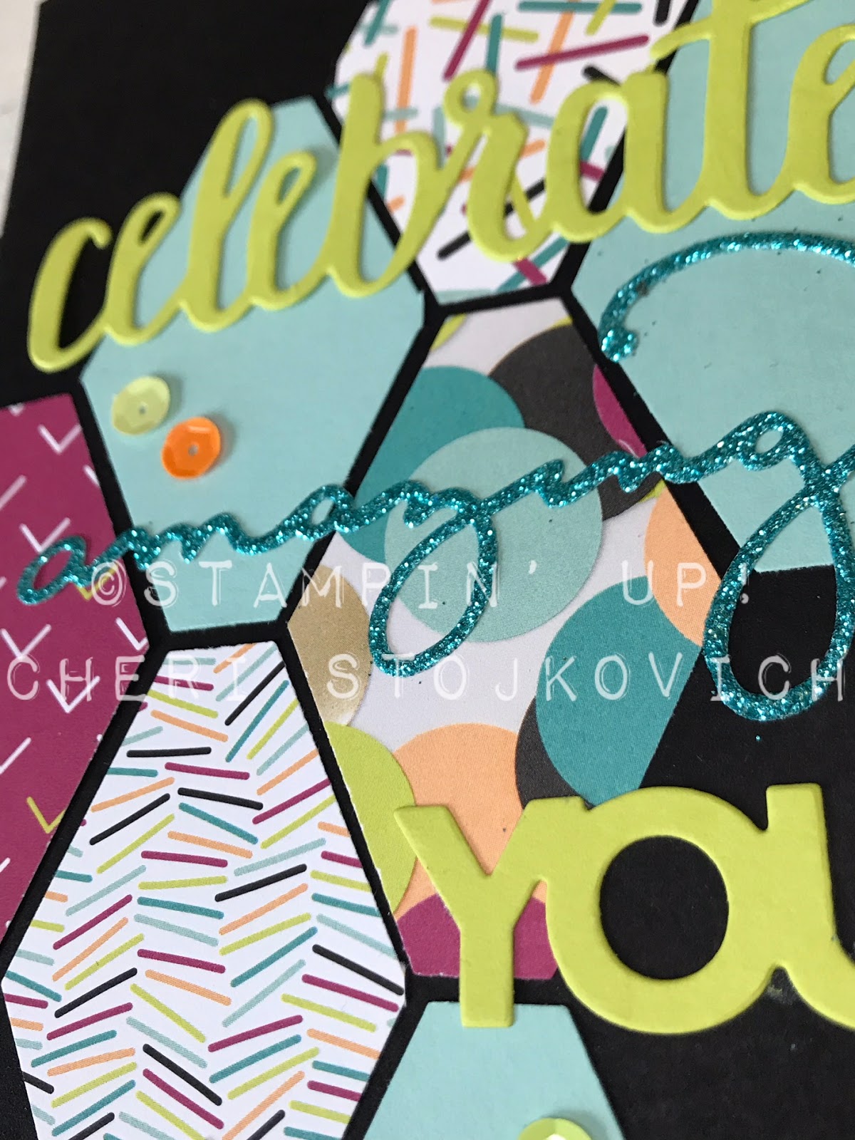 One of the cards I kept to the green and yellow sequins (love them) because many of us are done with winter and most of the cards we made this month were floral. I felt this one would be easily one you could give to any man in your life. I know the Father’s Day suite this year doesn’t appeal to all – but don’t skip by the Tailored Tag punch – as you can see here – it is so much fun to play with!