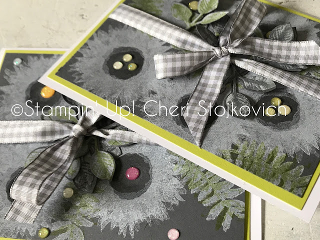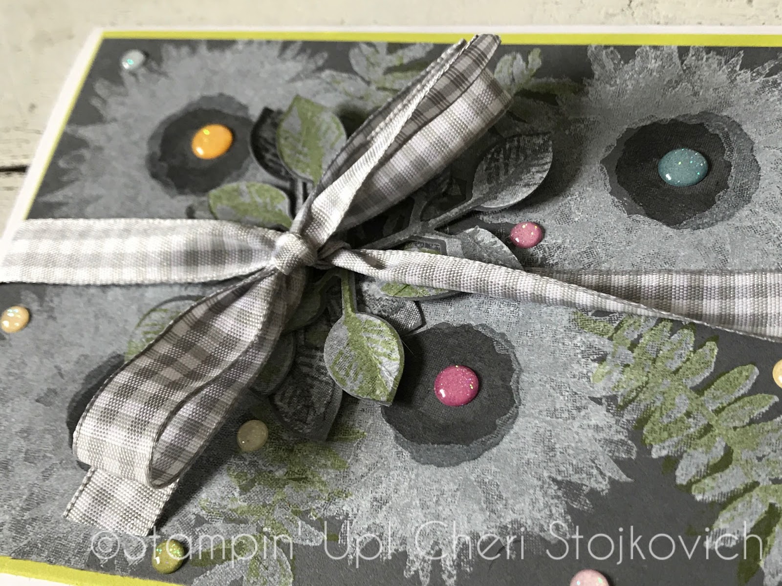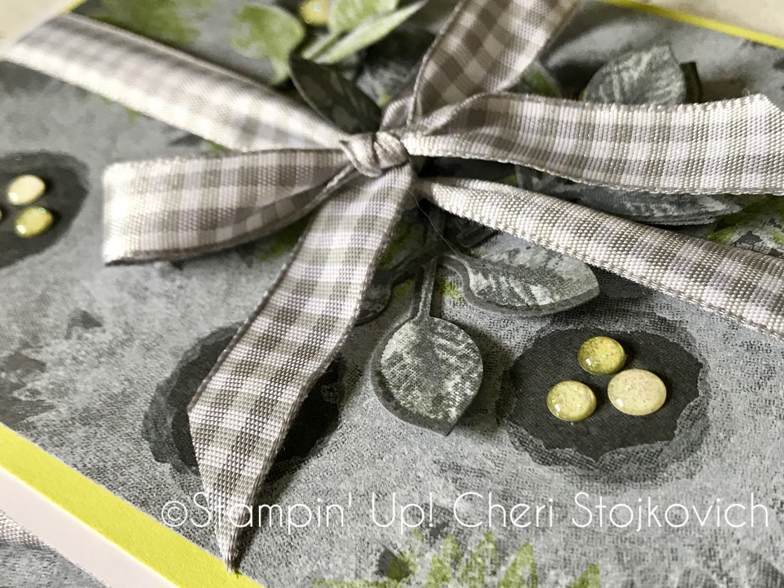 OOOH that gingham ribbon is just perfect with this fun color combination. I love that the images are stamped on a non white/vanilla background.