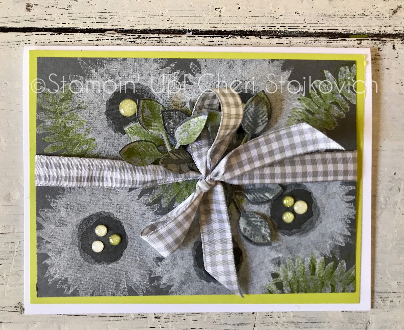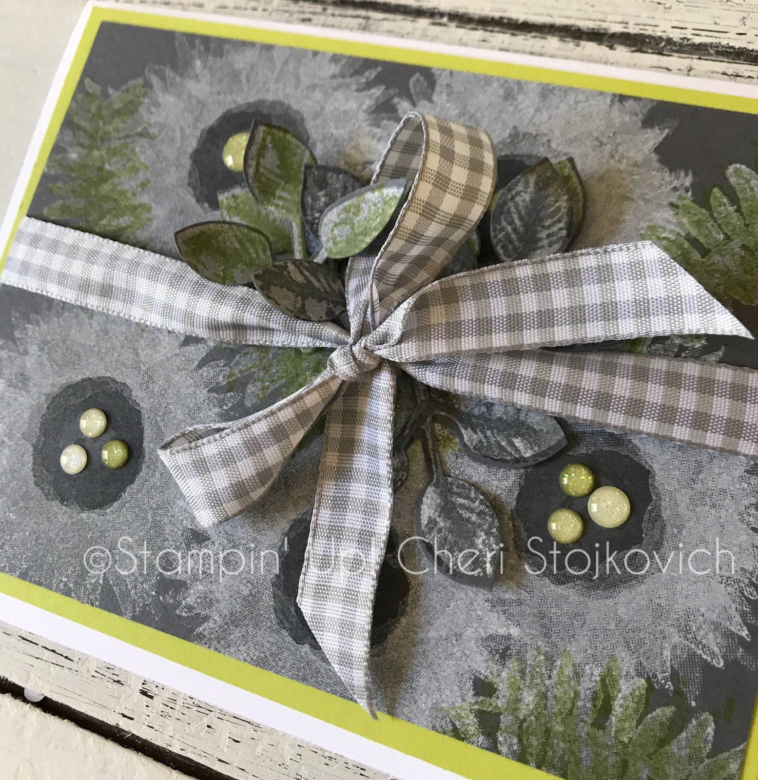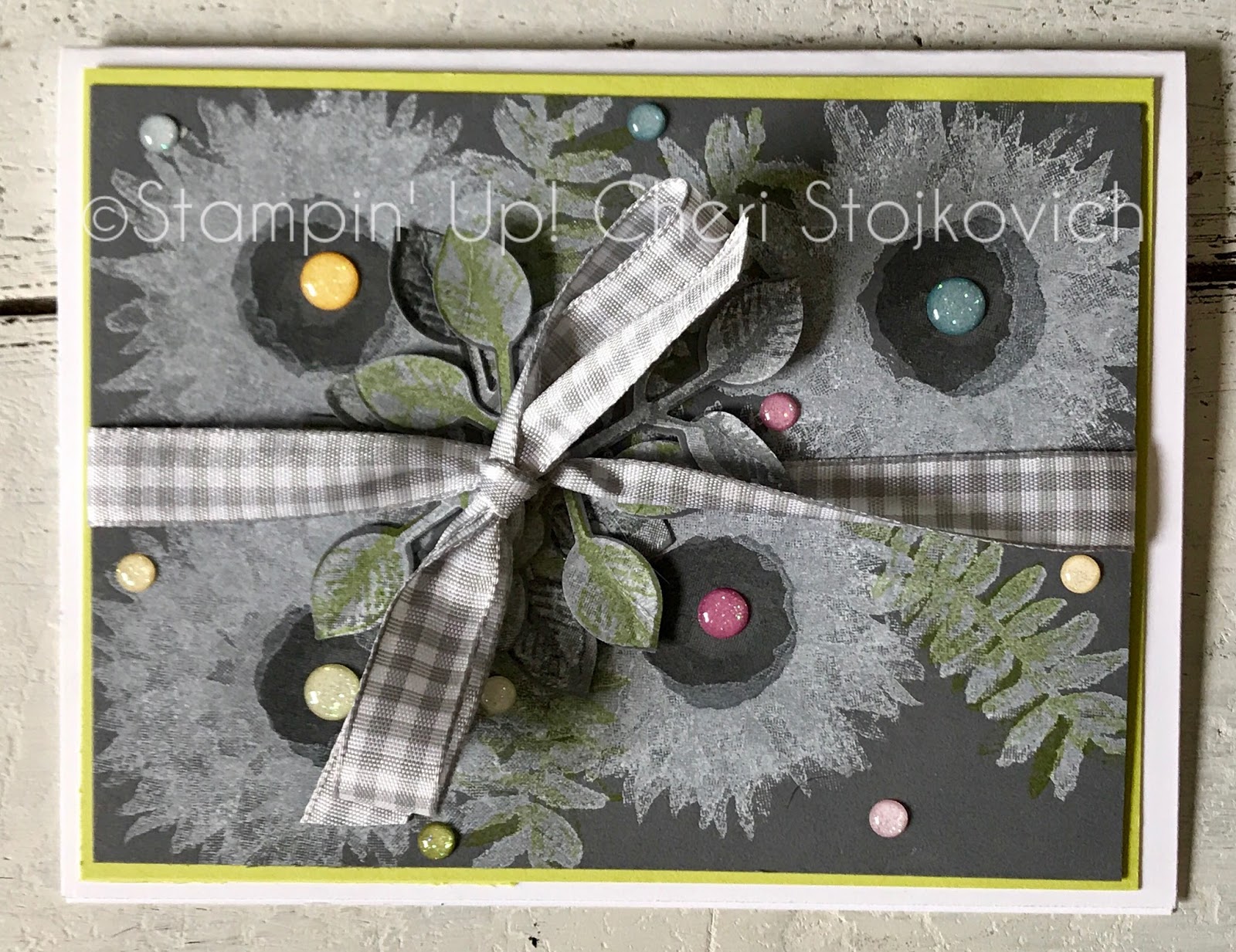 OOOH that gingham ribbon is just perfect with this fun color combination. I love that the images are stamped on a non white/vanilla background.