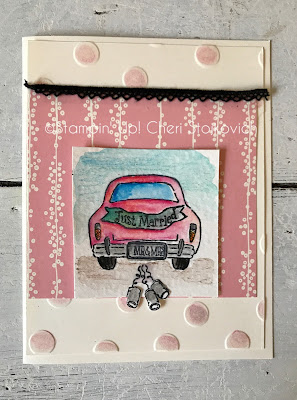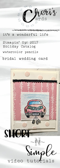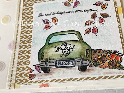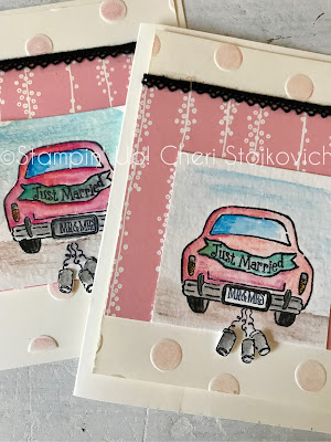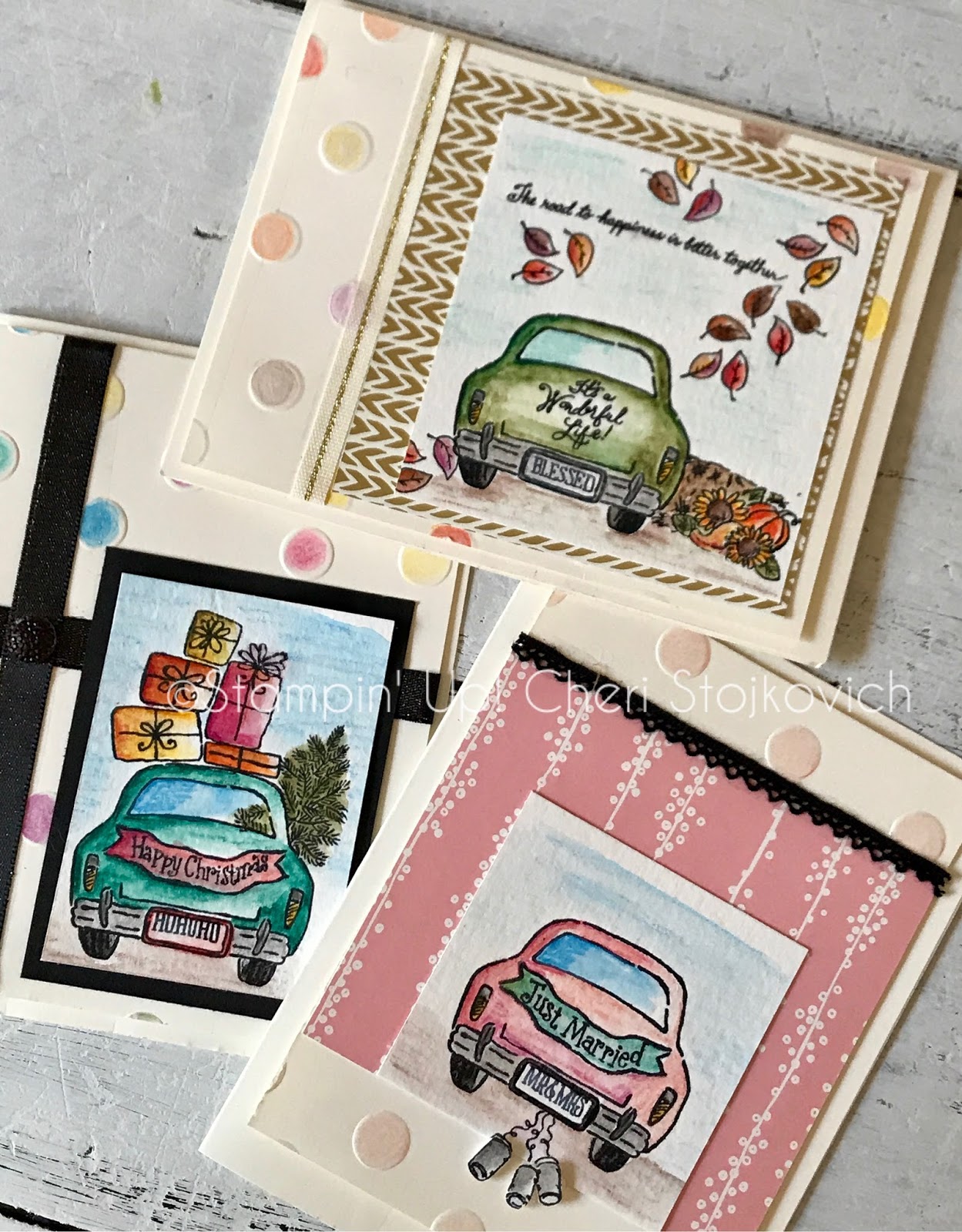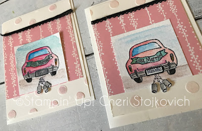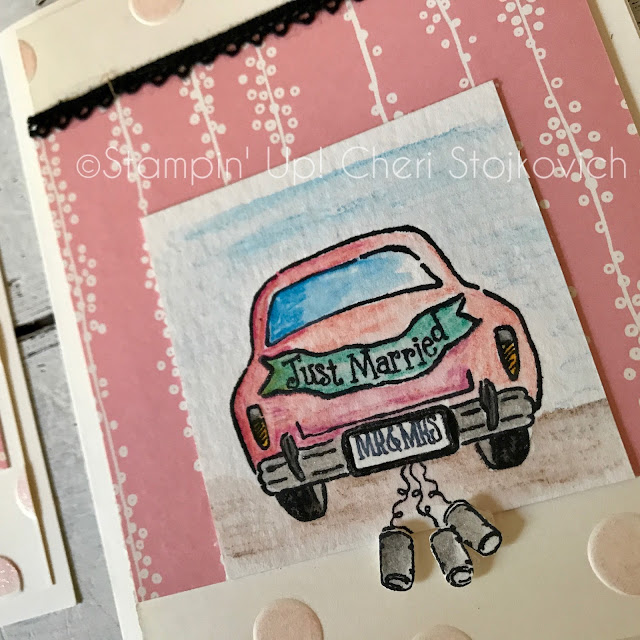 When I first got my stack of stamps from the Holiday catalog – this was the first set I went for. So – stamp wise I went for the obvious. Paper wise – on these two cards – this is the Designer Series Paper that is part of what is with the new baby stamps in the catalog – but it works (well!) with the autumn themed car – and perfect with the bridal one.