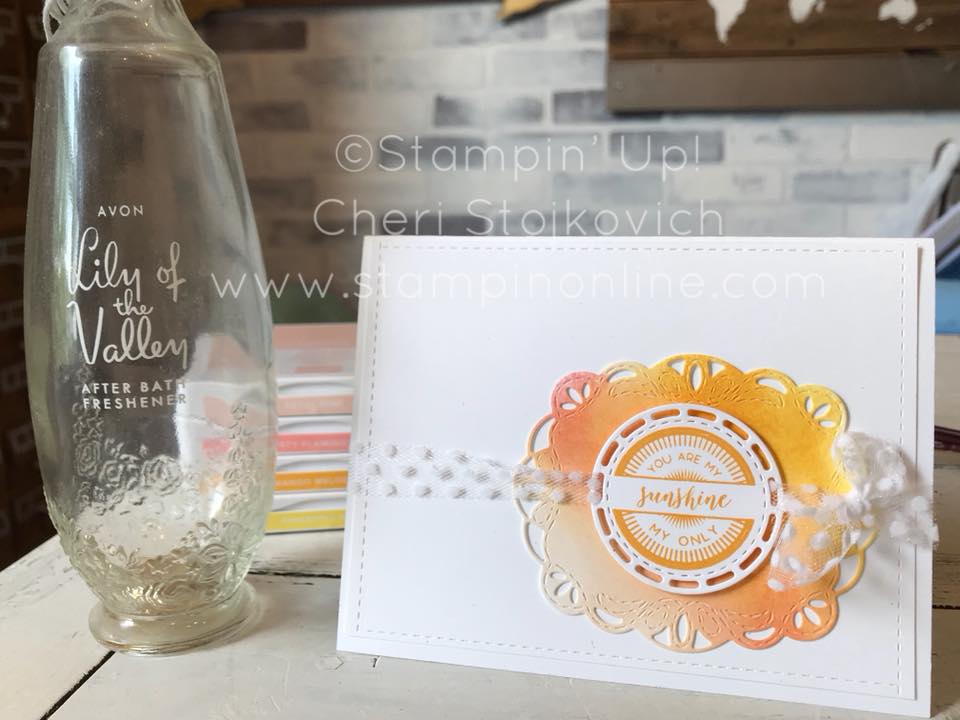 AND the consumable supplies(cardstock, ribbon, etc) needed to make the card that we made at camp for the stamps that you purchased!!