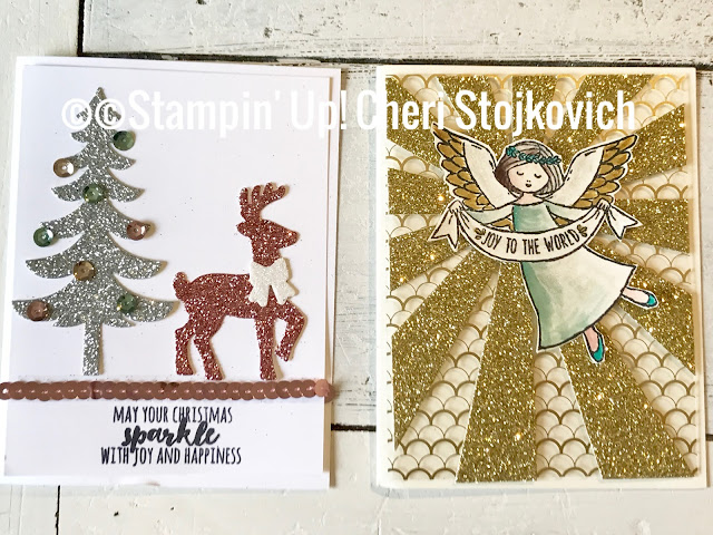 Another love of mine – especially on Christmas cards – is the glimmer papers. The cards I sent out this year were the copper wreath above and the 2 super shimmery ones below. The Angel was one of my all time favorite cards in nearly 25 years of making my Christmas cards.