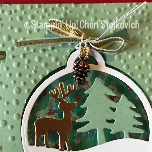 I LOVED the little copper pine cones. I used them on both of these fun cards. I kept some aside for future use. Copper is my favorite metal color.