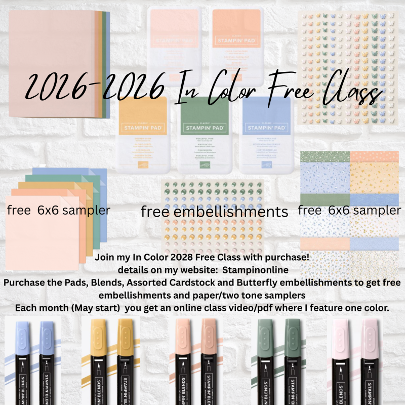 The new Stampin’ Up! In Colors for 2026-2028 are simply fabulous! The colors themselves create such a beautiful feeling when used together on cards…and I can not WAIT to start mixing them with our current color line. What mixes will be the best? I always end up with a favorite .. and often it’s unexpected.