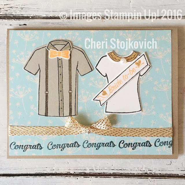 This Engagement congratulations card uses a fun new bundle called Custom Tees. Love it! There are sneak peeks of new paper and some of the FREE SAB ribbon on the card as well!