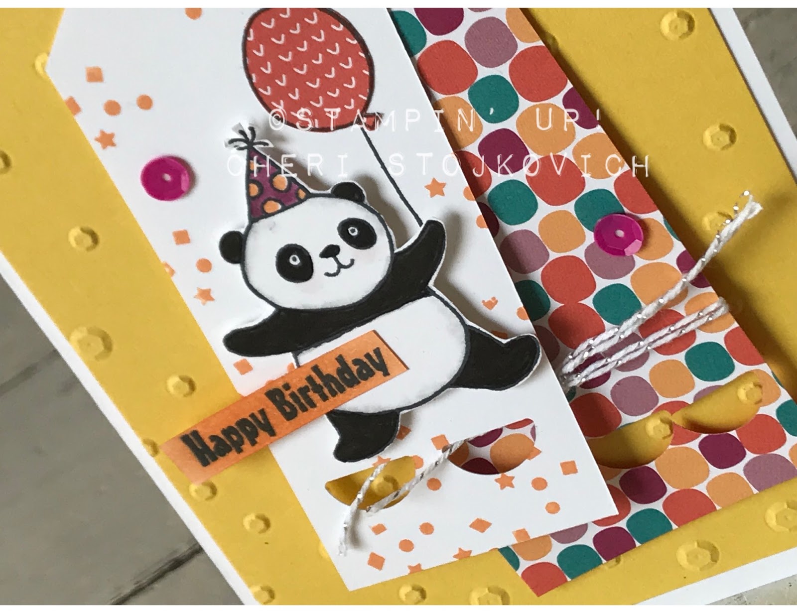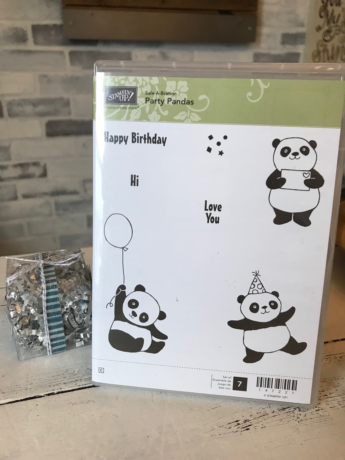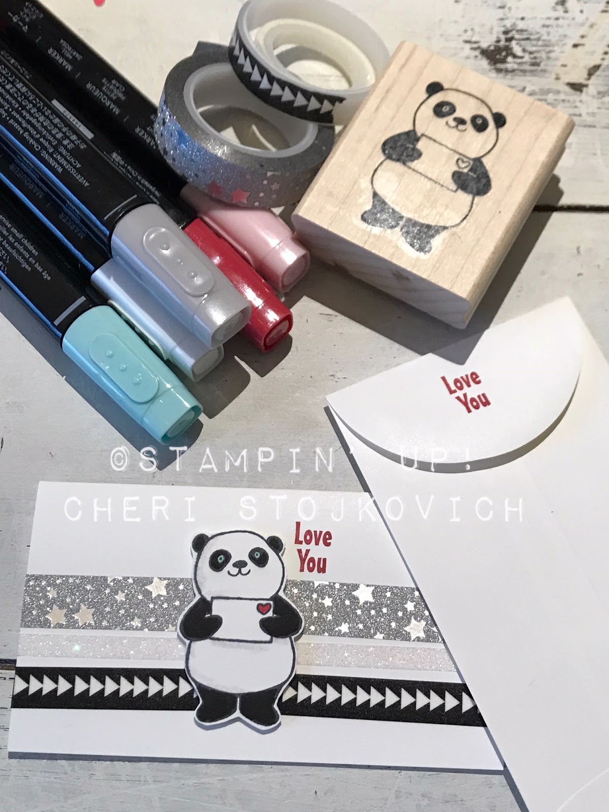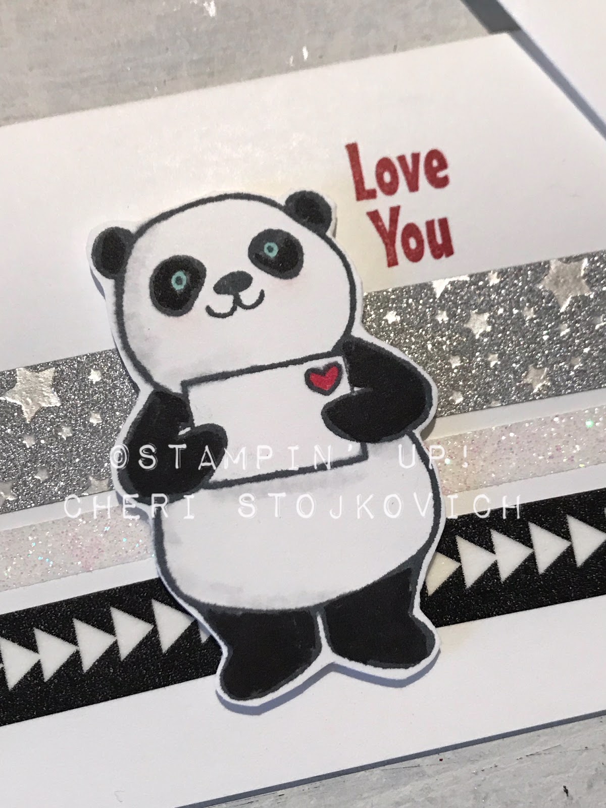 This super easy card was one I did for Valentine’s – but you can use it for any occasion. You could even make the same card just switch out the Panda holding the envelope for any of the others in the set.