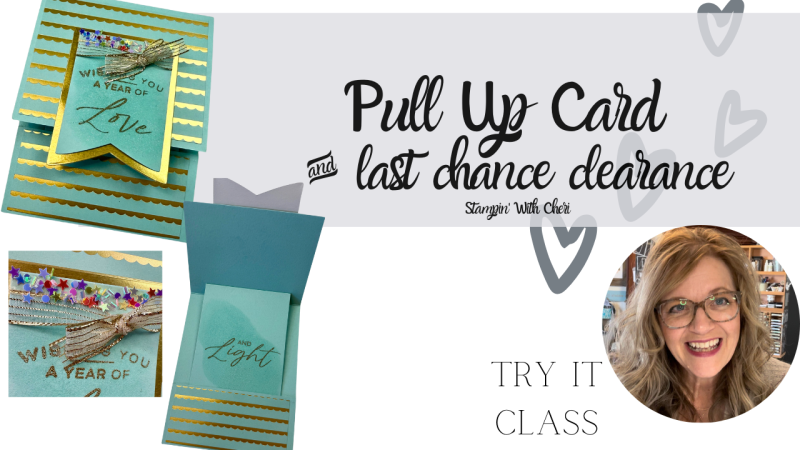 Today I have a fun pull up card for you…a New Year’s Card made mostly with product that is on the Last Chance List (while supplies last) and many of them clearanced priced.