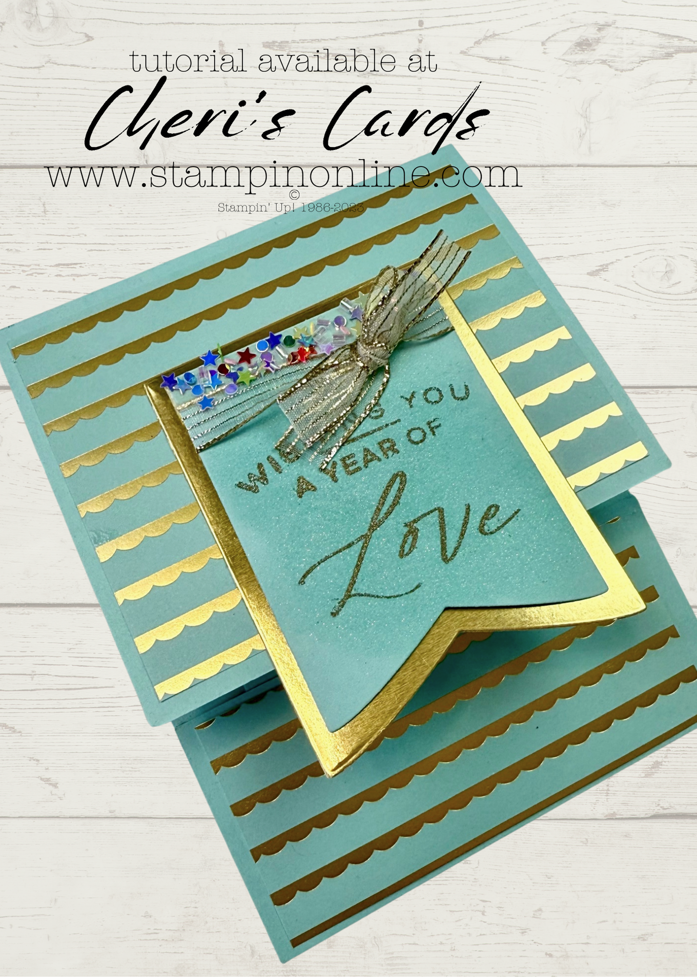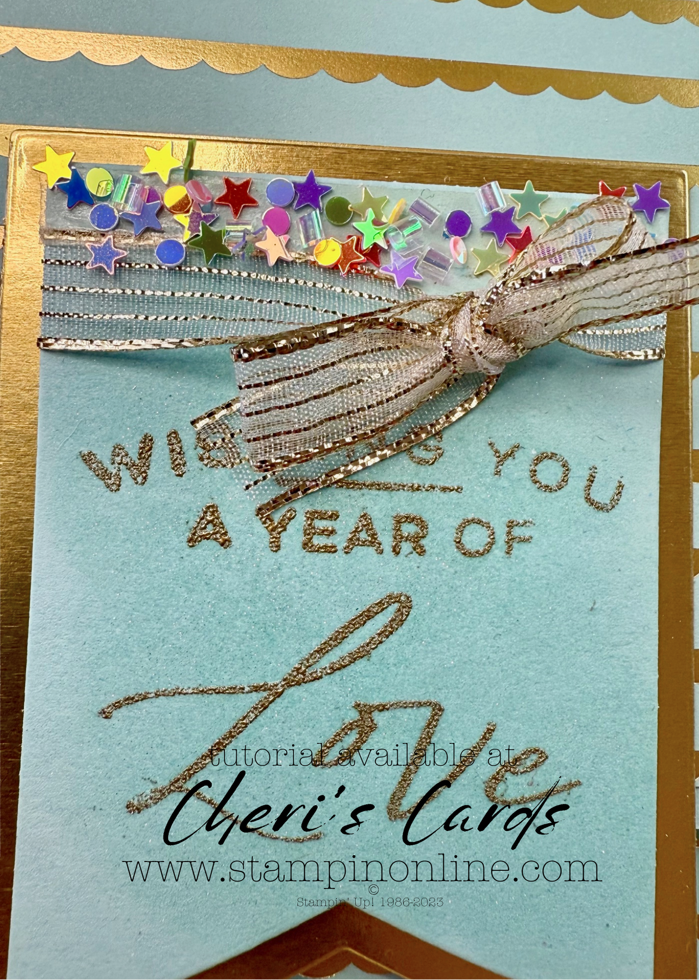 Today I have a fun pull up card for you…a New Year’s Card made mostly with product that is on the Last Chance List (while supplies last) and many of them clearanced priced.