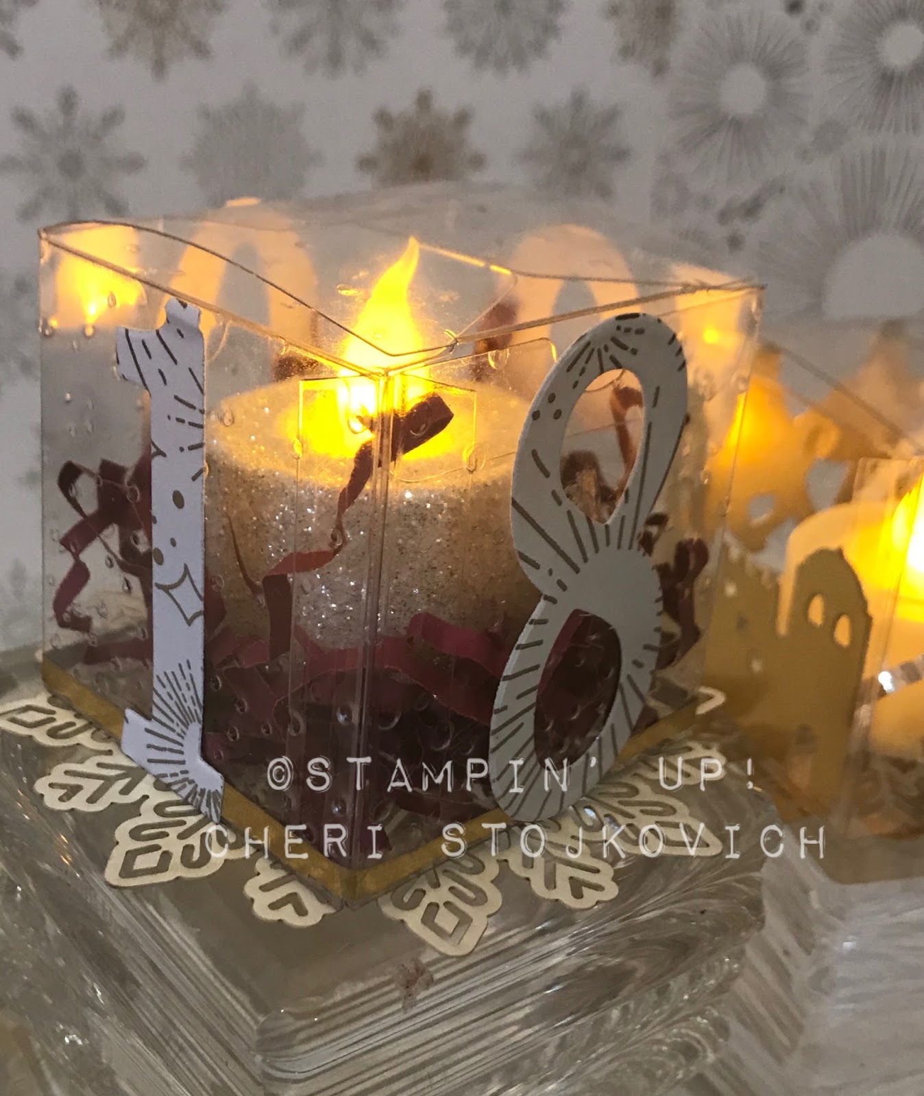 I used all three colors – a different one in each of my designs. Since you can’t order it til January, if you would like to make the luminaries and need some shreddie – here is what I will do – simply order any of the 3 die cuts that I used from me by Dec 8 – and I will stuff a little envelope with shreddie and send some to you at no charge!