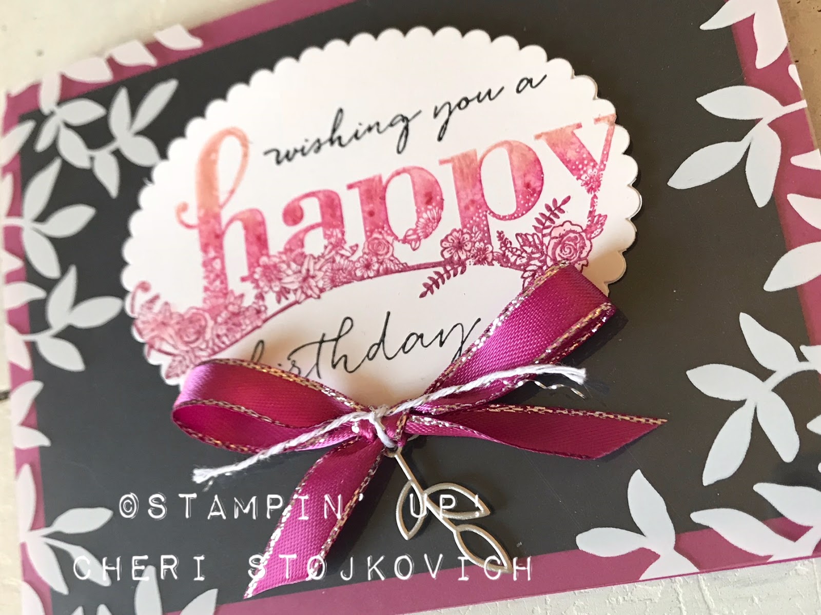 For now – here is a fun card (Stampin’ Up! used the technique of sponging the ink onto this stamp set on their video for Happy Wishes – I just kicked it up a notch adding the glossy and the embossing)