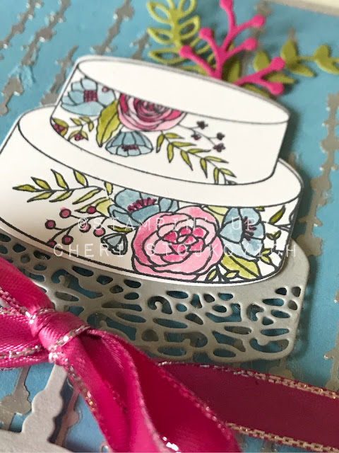 The ribbons are velvet and satin. The papers are silver and shiny. The shreddie is even shiny. There are stencils with metallic pastes and glittery pastes.